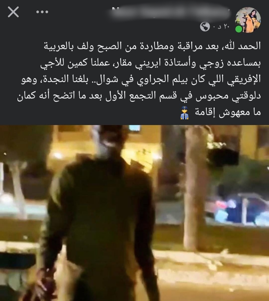 وتبيّن عدم حيازة المتهم إقامة قانونية، وتم اتخاذ الإجراءات القانونية اللازمة حيال الواقعة.