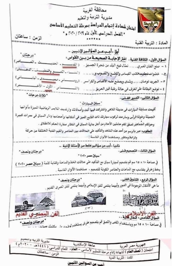 يمكن للطلاب الاطلاع على نماذج امتحان رسم للصف الثالث الإعدادي الترم الأول 2026 من أهم الوسائل التي تساعدهم على التعرف على شكل الامتحان وطبيعة الأسئلة المتوقعة، والتدرب على تنفيذ الرسومات المطلوبة، من خلال الصور التالية: