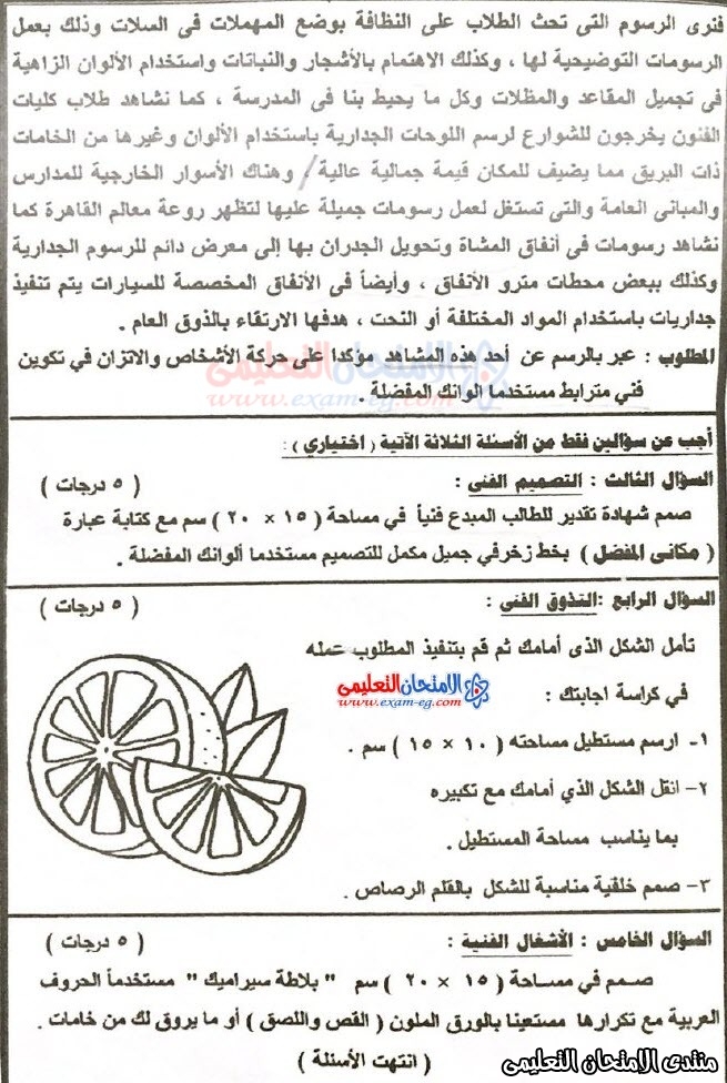 امتحان رسم الصف الثالث الإعدادي الترم الأول