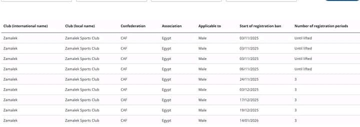 للمرة التاسعة، فيفا يعلن إيقاف قيد الزمالك ثلاث فترات جديدة