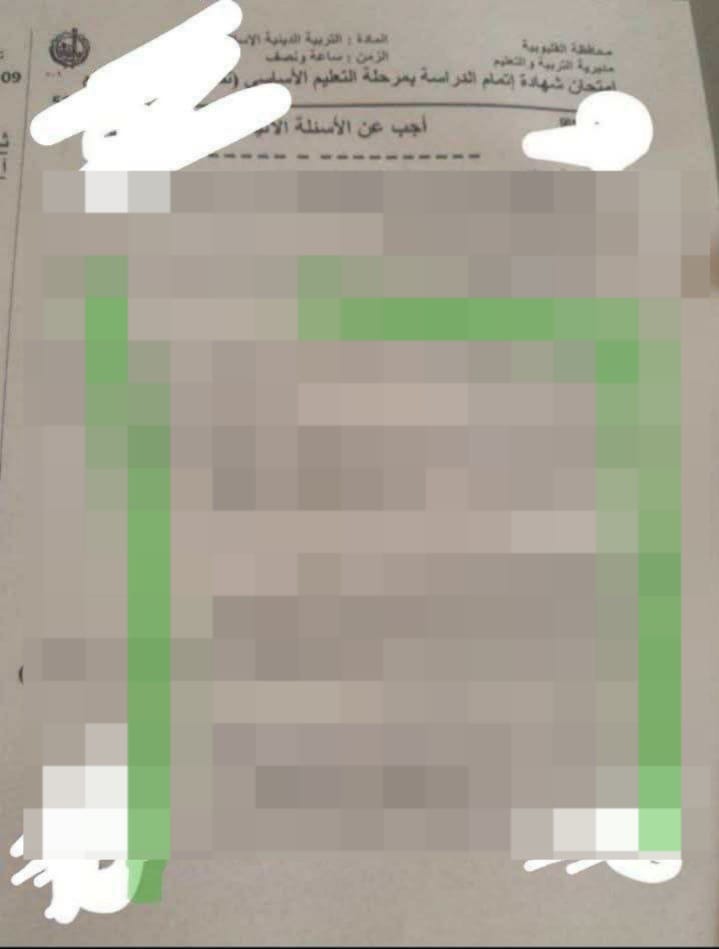 تداول طلاب الصف الثالث الإعدادي بمحافظة القليوبية، صورًا من امتحان الدين من داخل لجان امتحانات الشهادة الإعدادية والذي انتشرت عبر جروبات تطبيق تليجرام وذلك مع انتشار نماذج حل الامتحان، في بداية غير مبشرة للرقابة على اللجان.