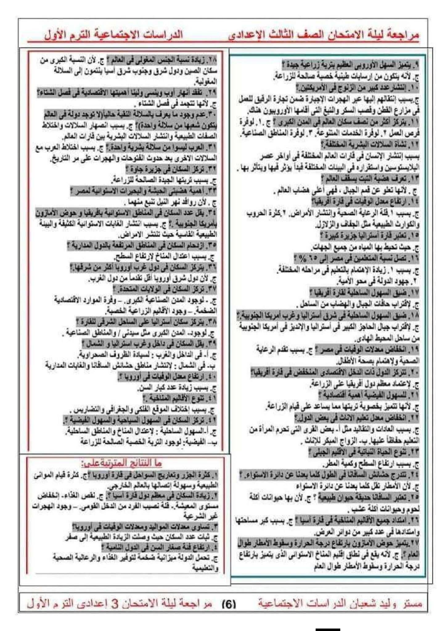 ويؤدي طلاب الشهادة الإعدادية امتحان الفصل الدراسي الأول في مادة الدراسات الأيام المقبلة، لذلك يستعد طلاب الصف الثالث الإعدادي من خلال حل نماذج مادة الدراسات.