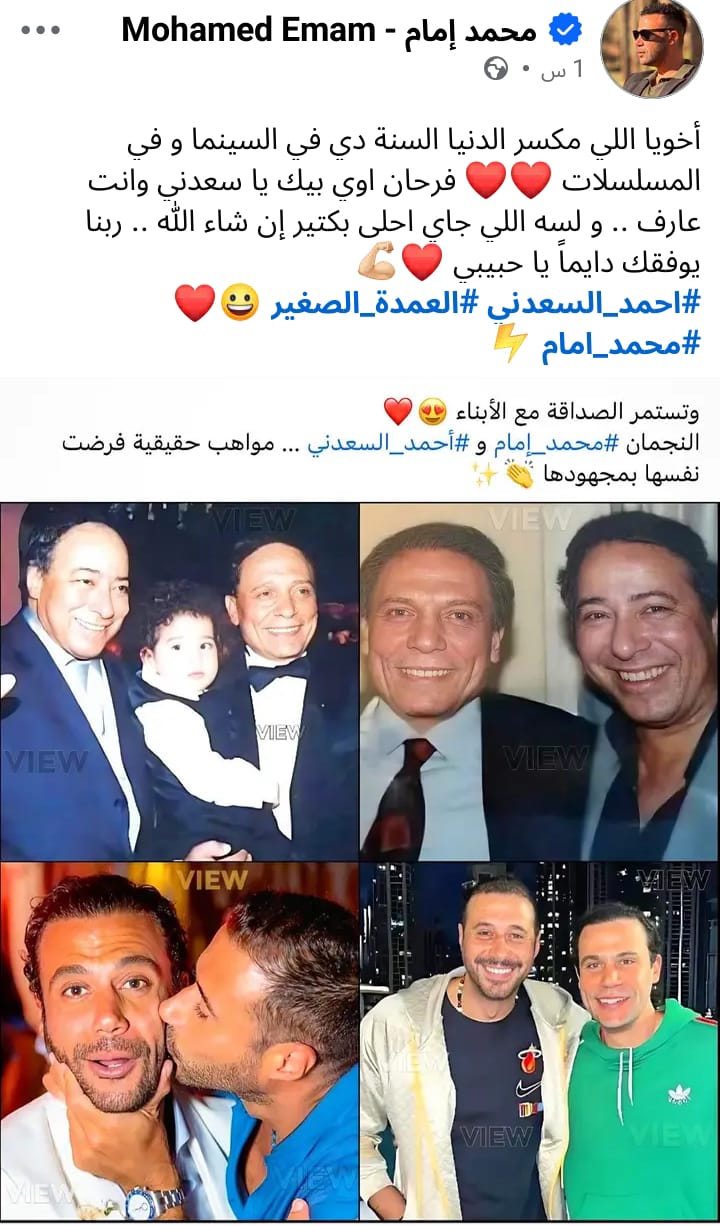 وشارك محمد إمام جمهوره بصور مجمعة لوالده الفنان عادل إمام مع الفنان صلاح السعدني، ومحمد إمام مع أحمد السعدني، قائلًا: "أخويا اللي مكسر الدنيا السنة دي في السينما وفي المسلسلات، فرحان أوي بيك يا سعدني وأنت عارف، ولسة اللي جاي أحلى بكتير، إن شاء الله ربنا يوقك دايما يا حبيبي".