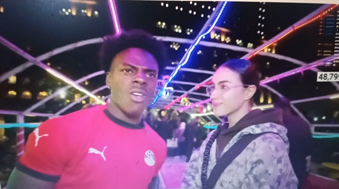 استمع اليوتيوبر الأمريكي أثناء تواجده على مركب في النيل إلى غناء فتاة تدعى “نور”، رقص مع المسؤول عن المركب.
