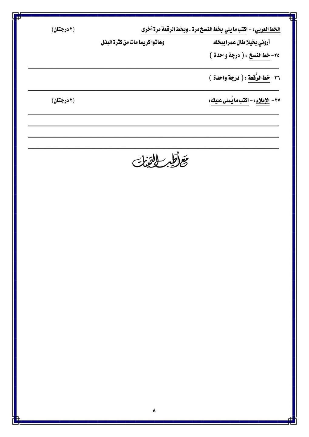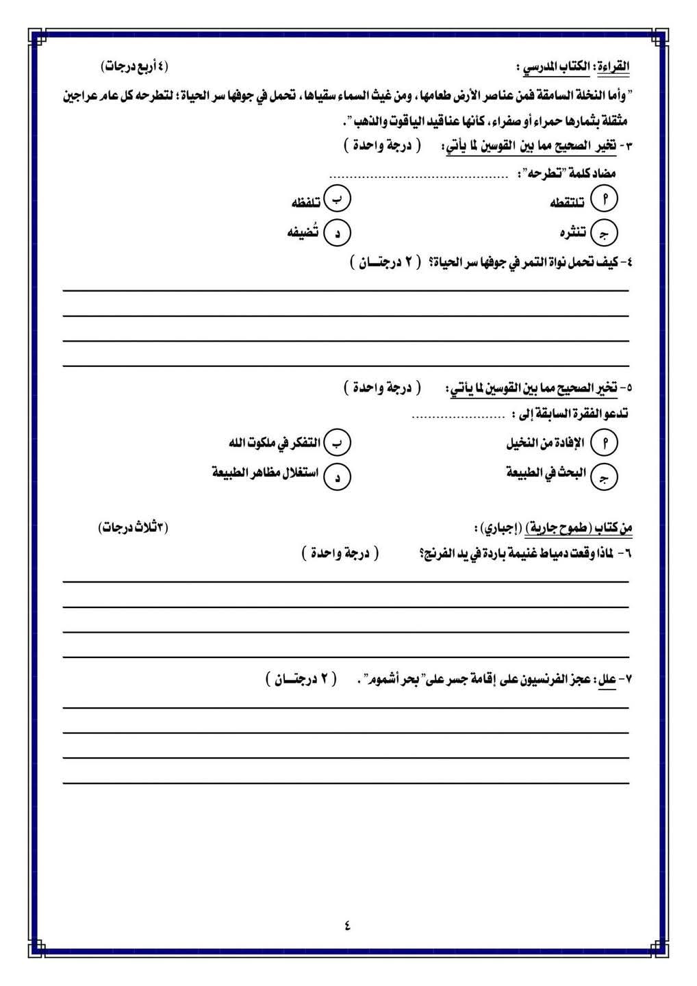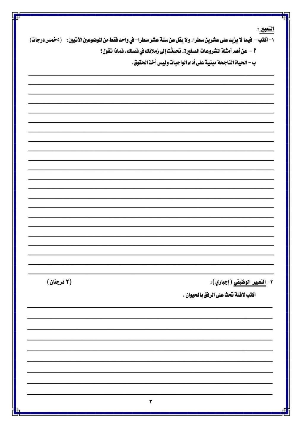 ونستعرض نماذج الامتحانات خلال الصور التالية: