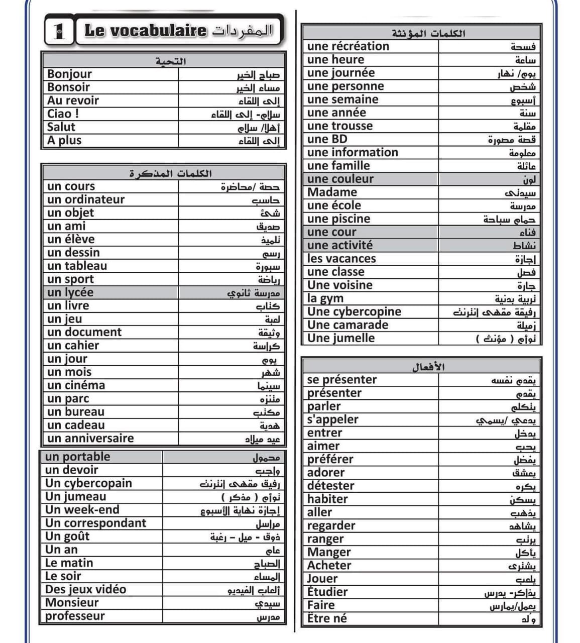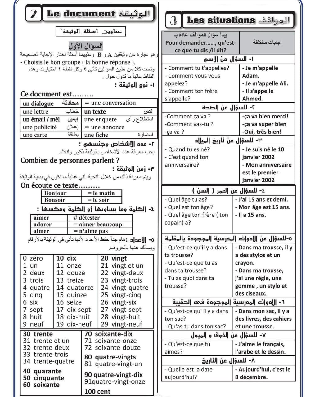 مراجعة فرنساوي أولى ثانوي