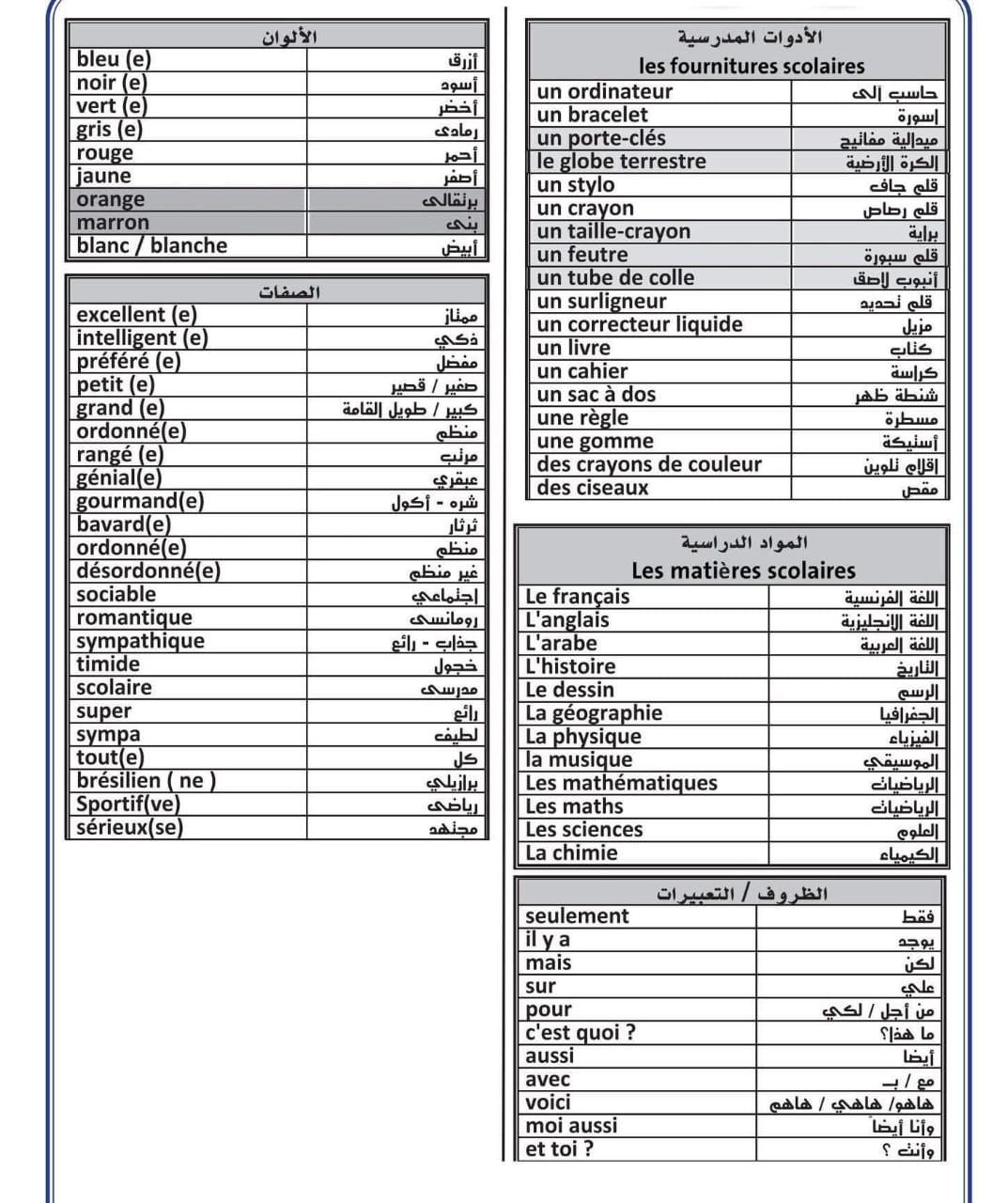 مراجعة فرنساوي أولى ثانوي 2026 قبل الامتحان