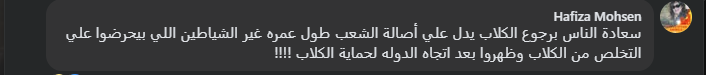 وكتب آخر: “سعادة الناس برجوع الكلاب يدل على أصالة الشعب طول عمره، غير الشياطين اللي بيحرضوا على التخلص من الكلاب وظهروا بعد اتجاه الدوله لحمايتها”.