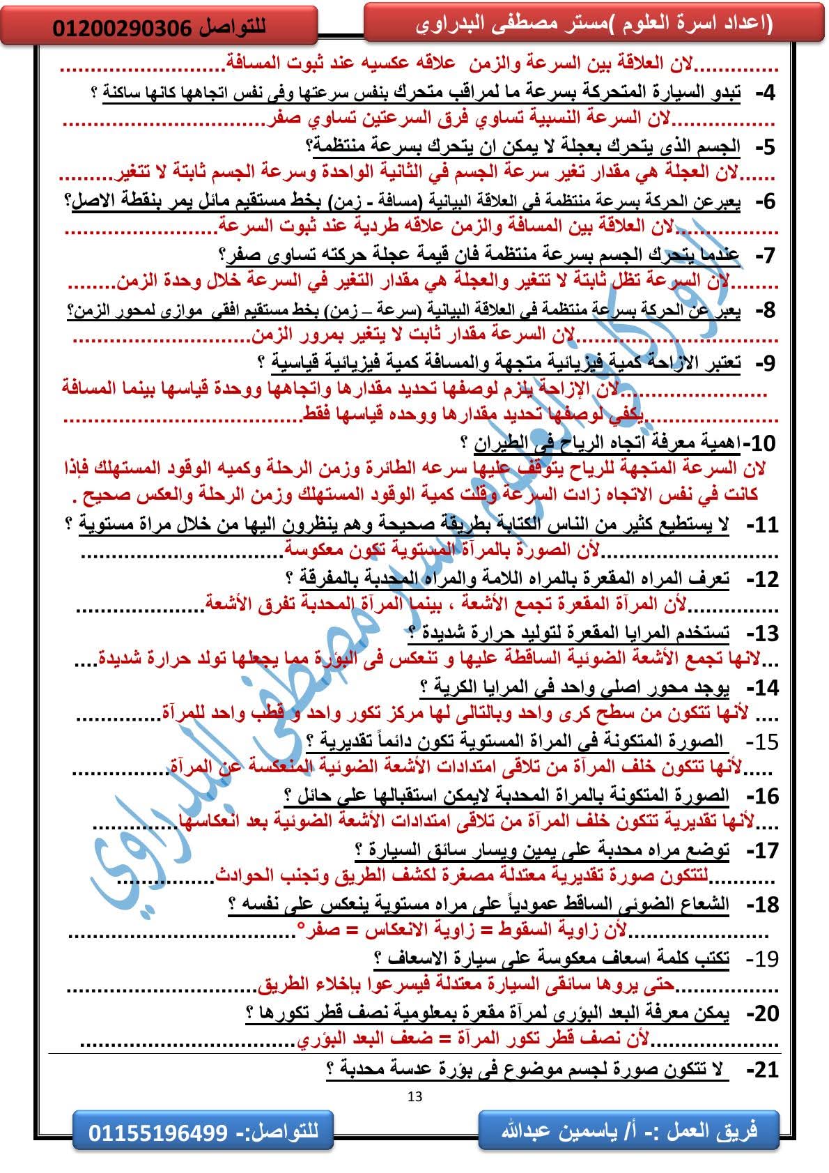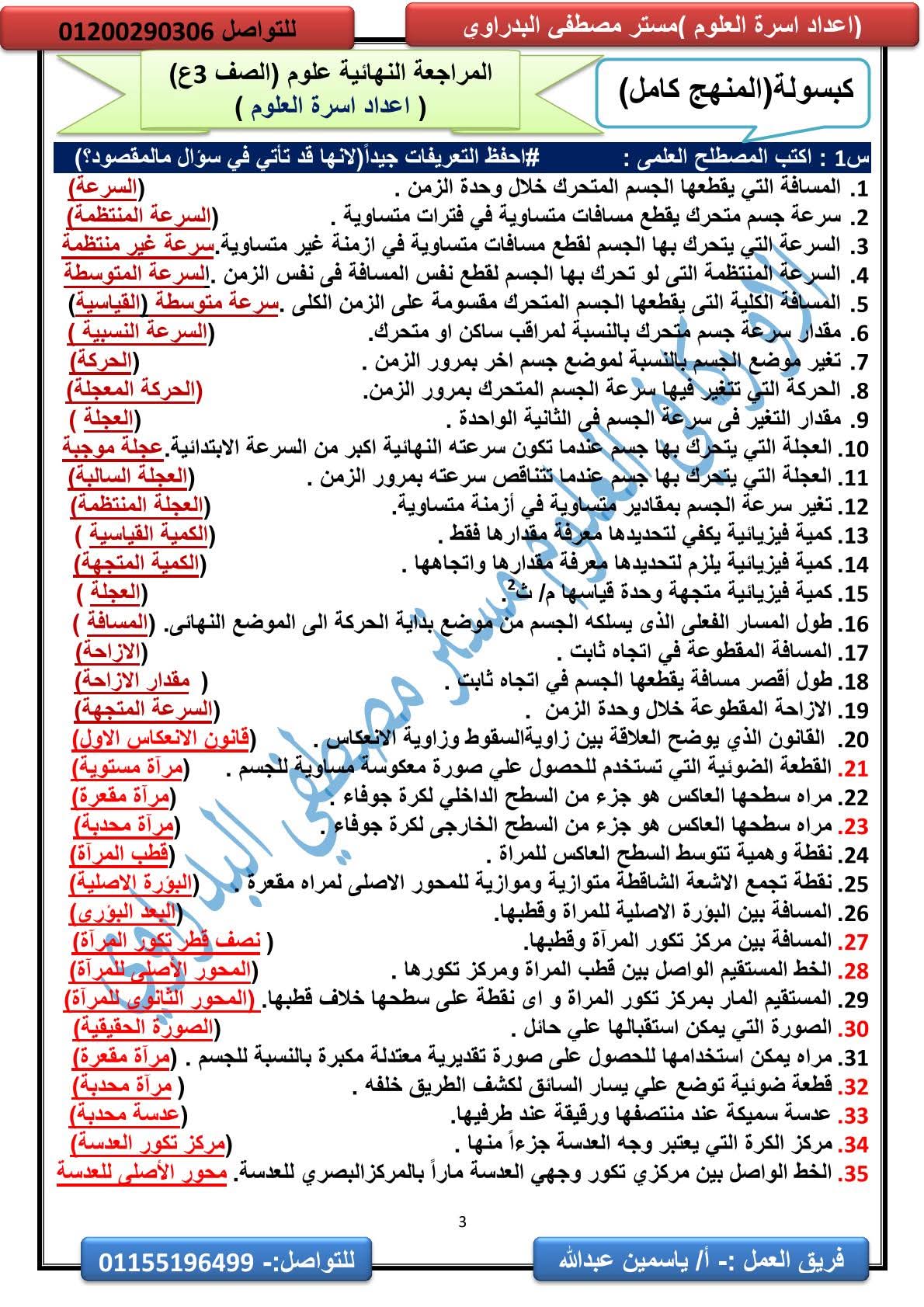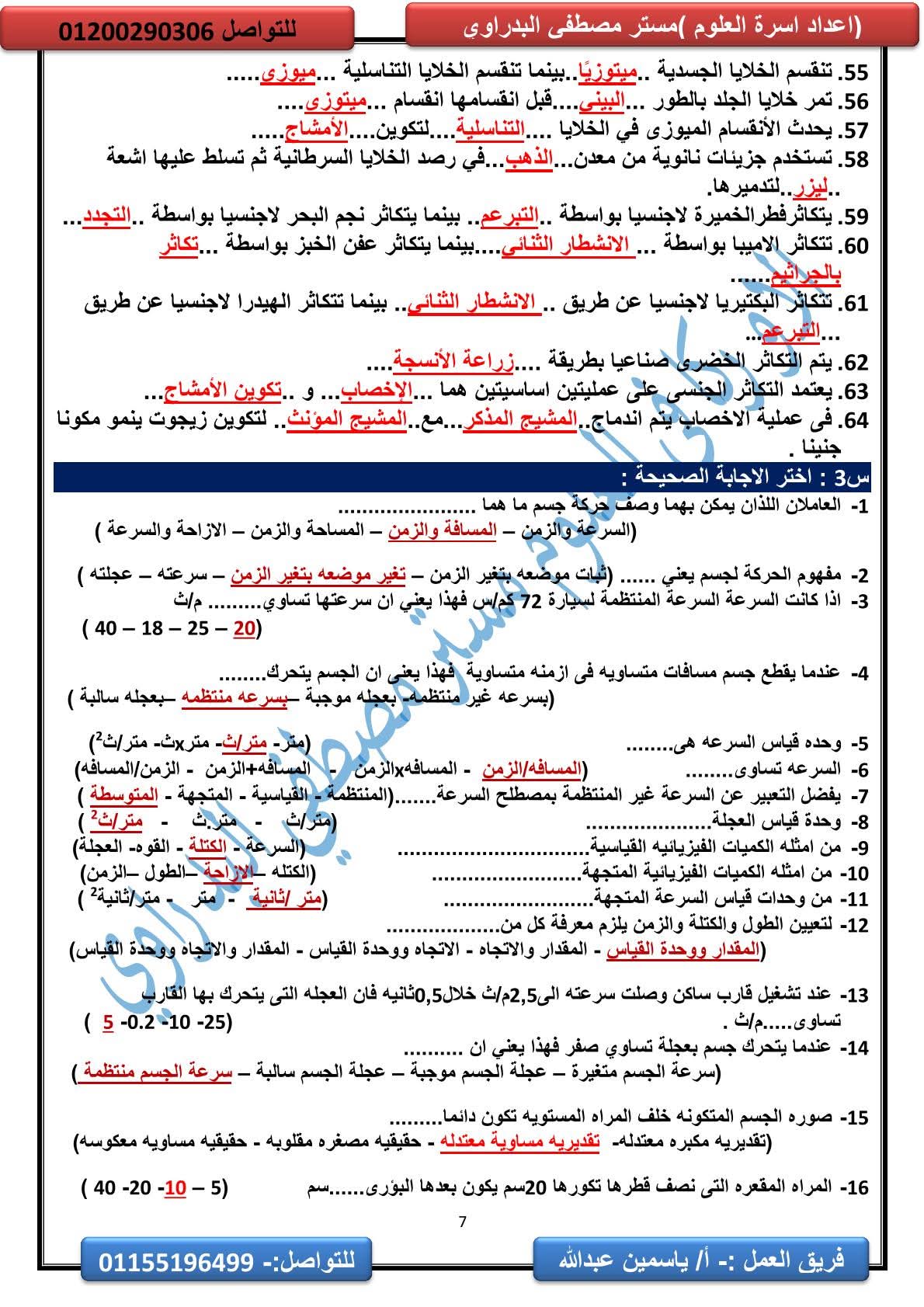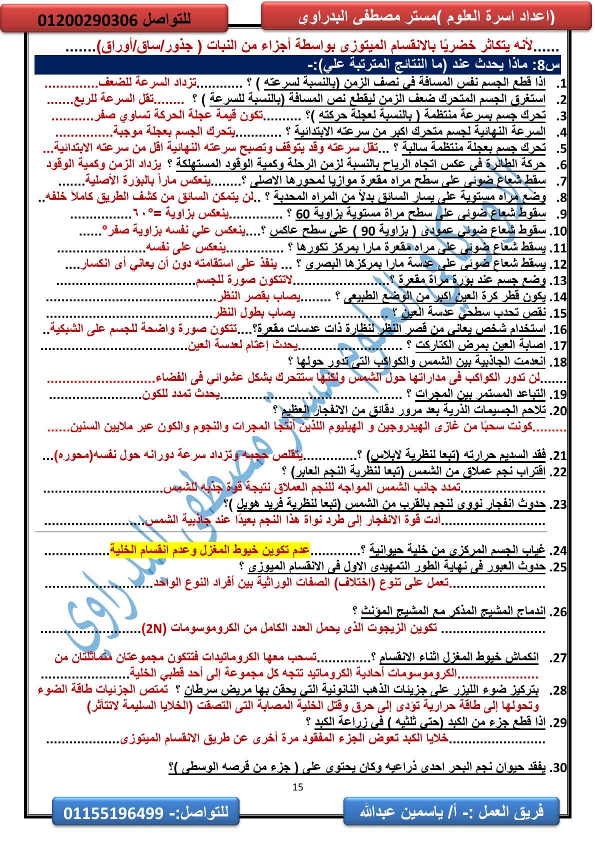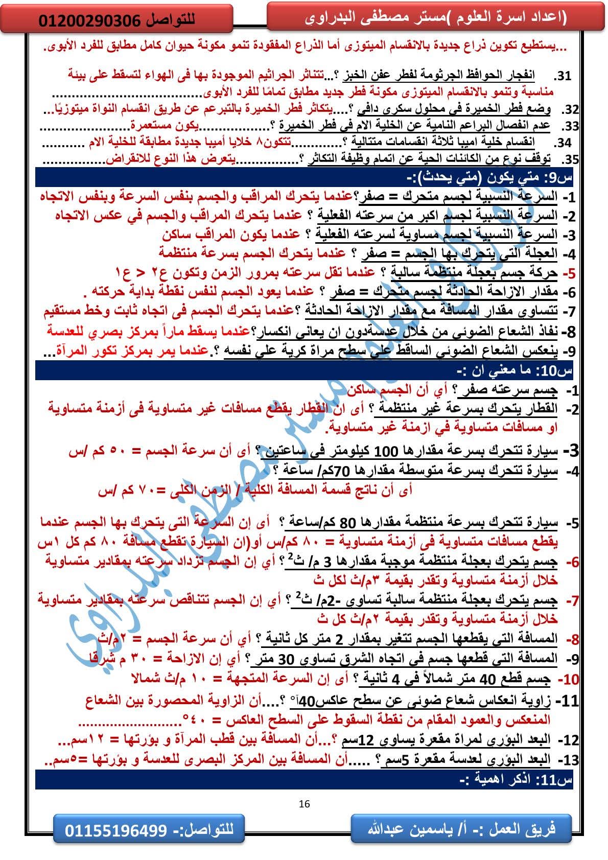 المراجعة النهائية علوم الصف الثالث الإعدادي