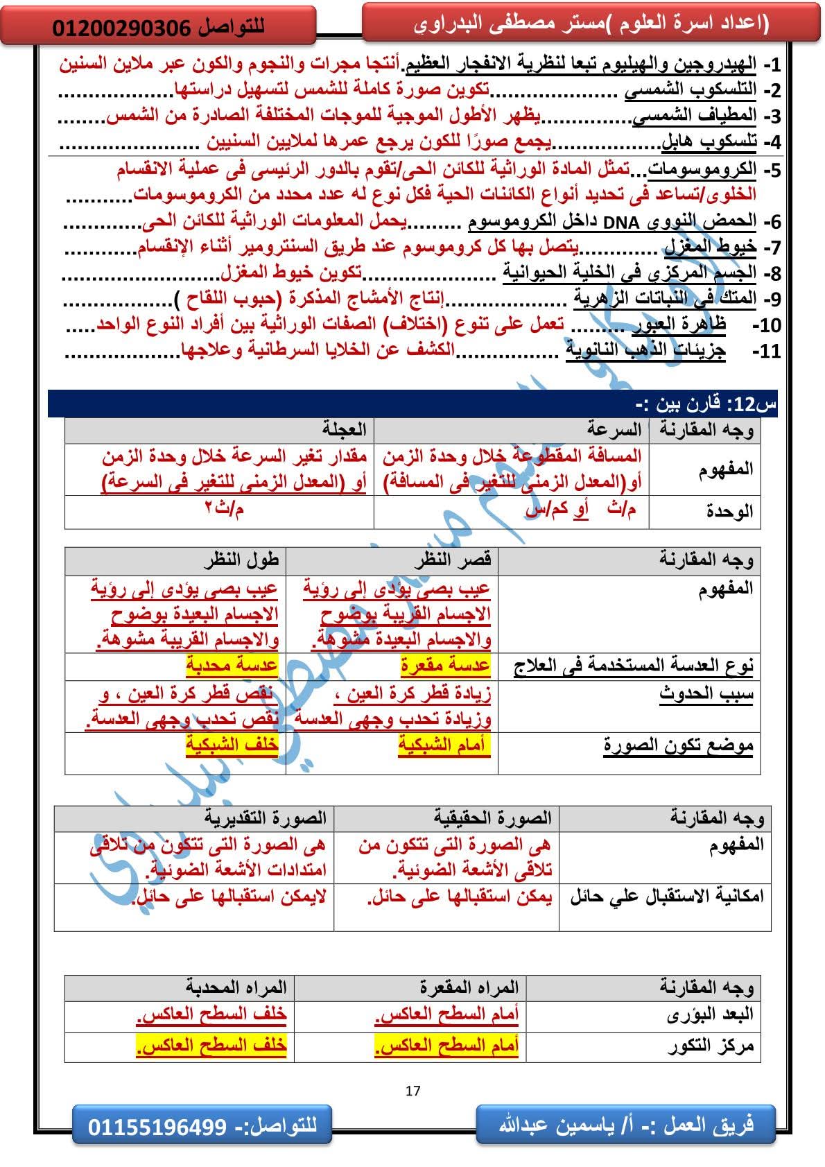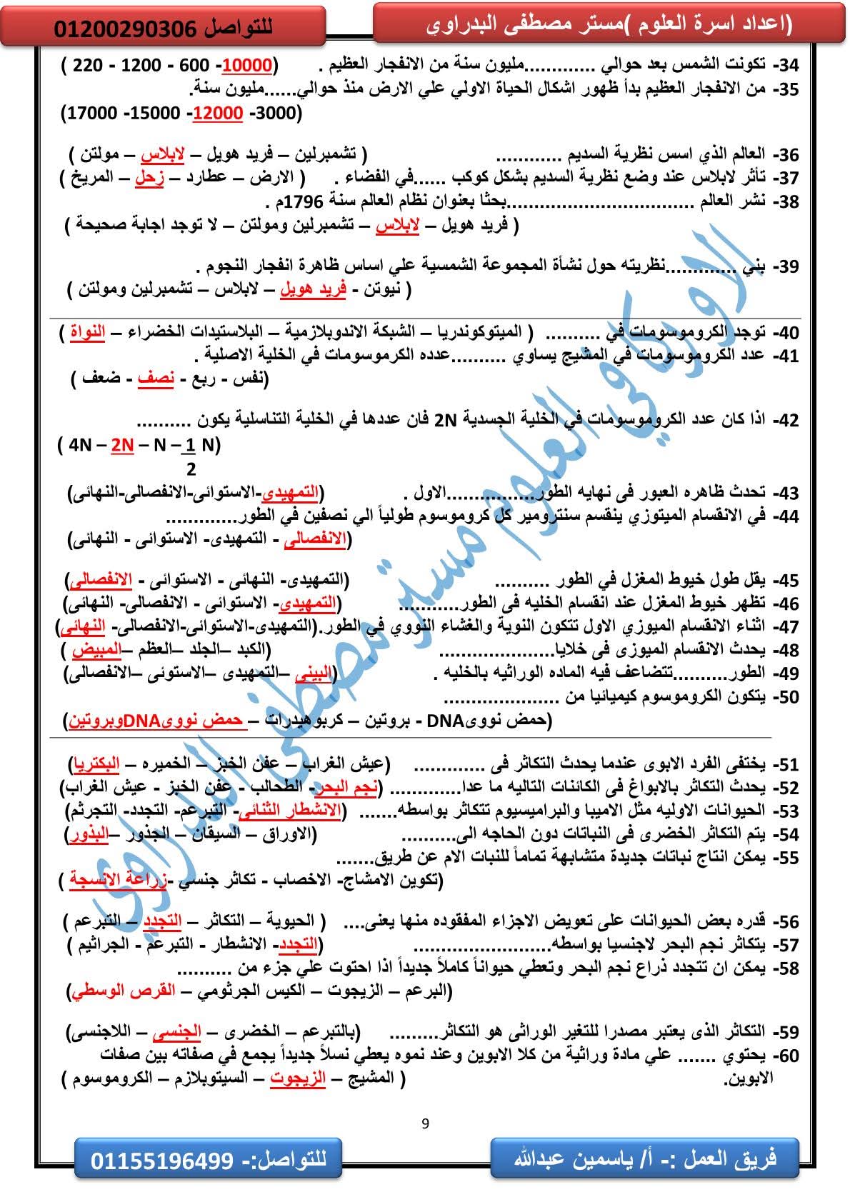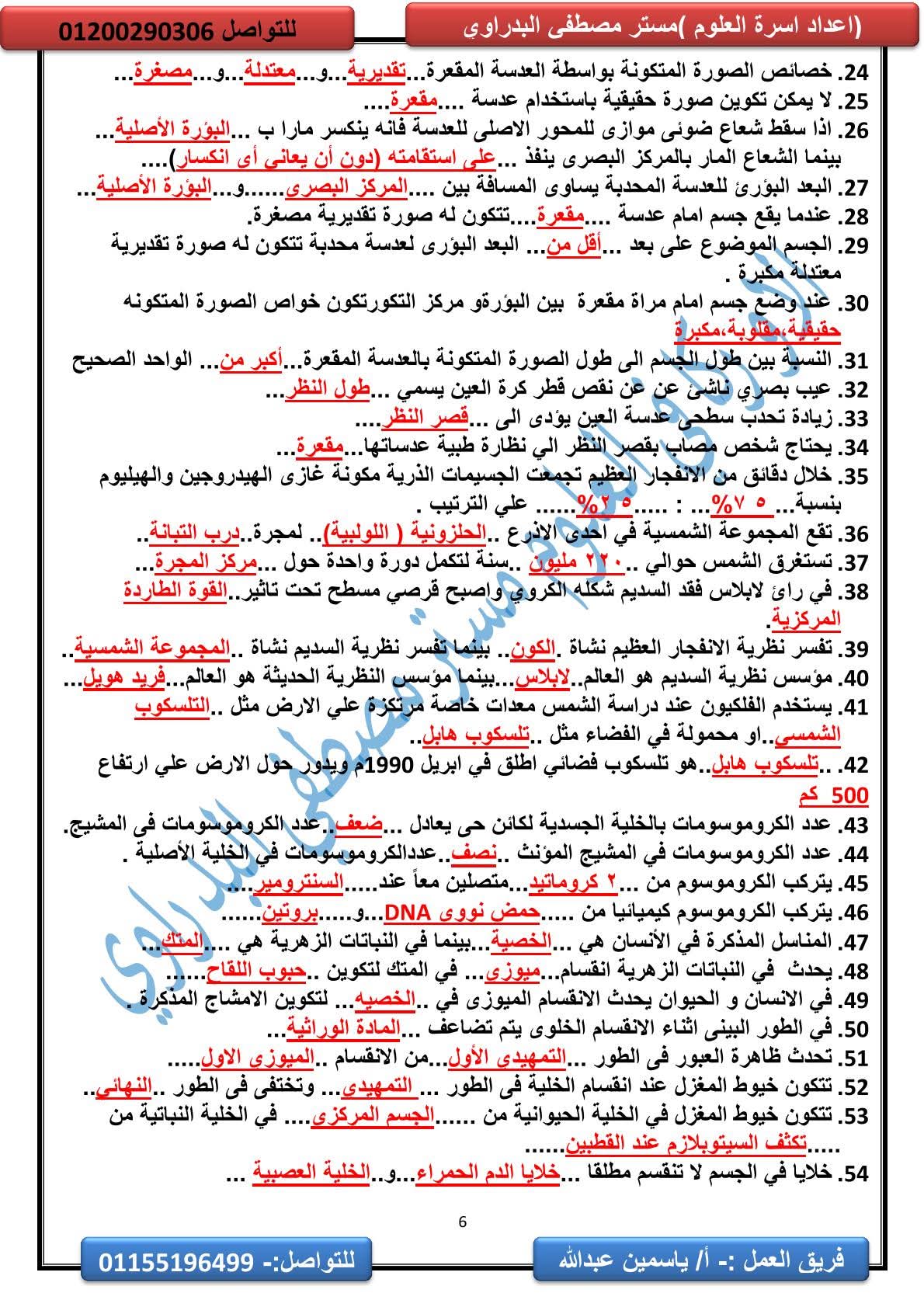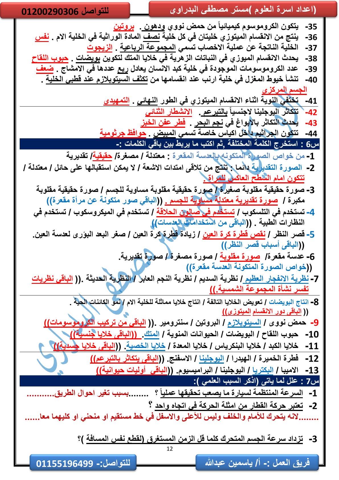 المراجعة النهائية علوم الصف الثالث الإعدادي