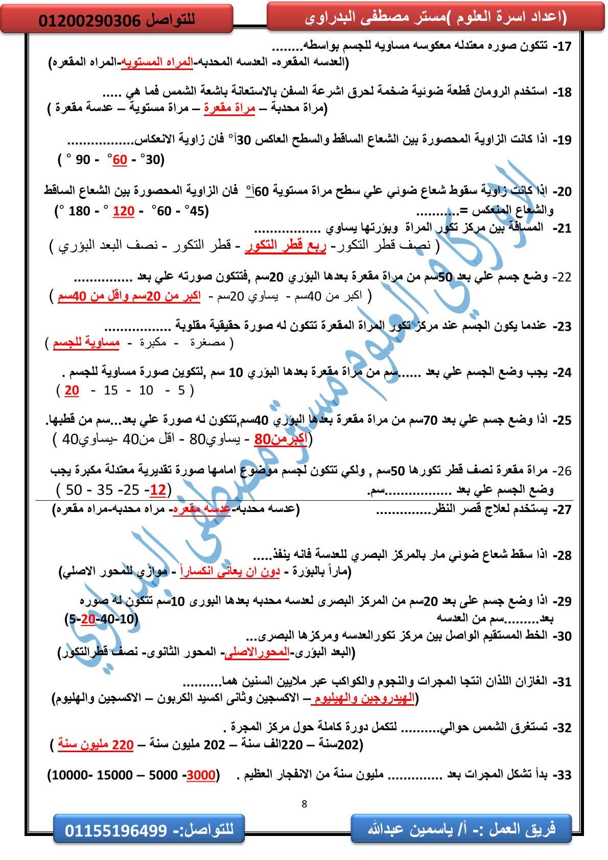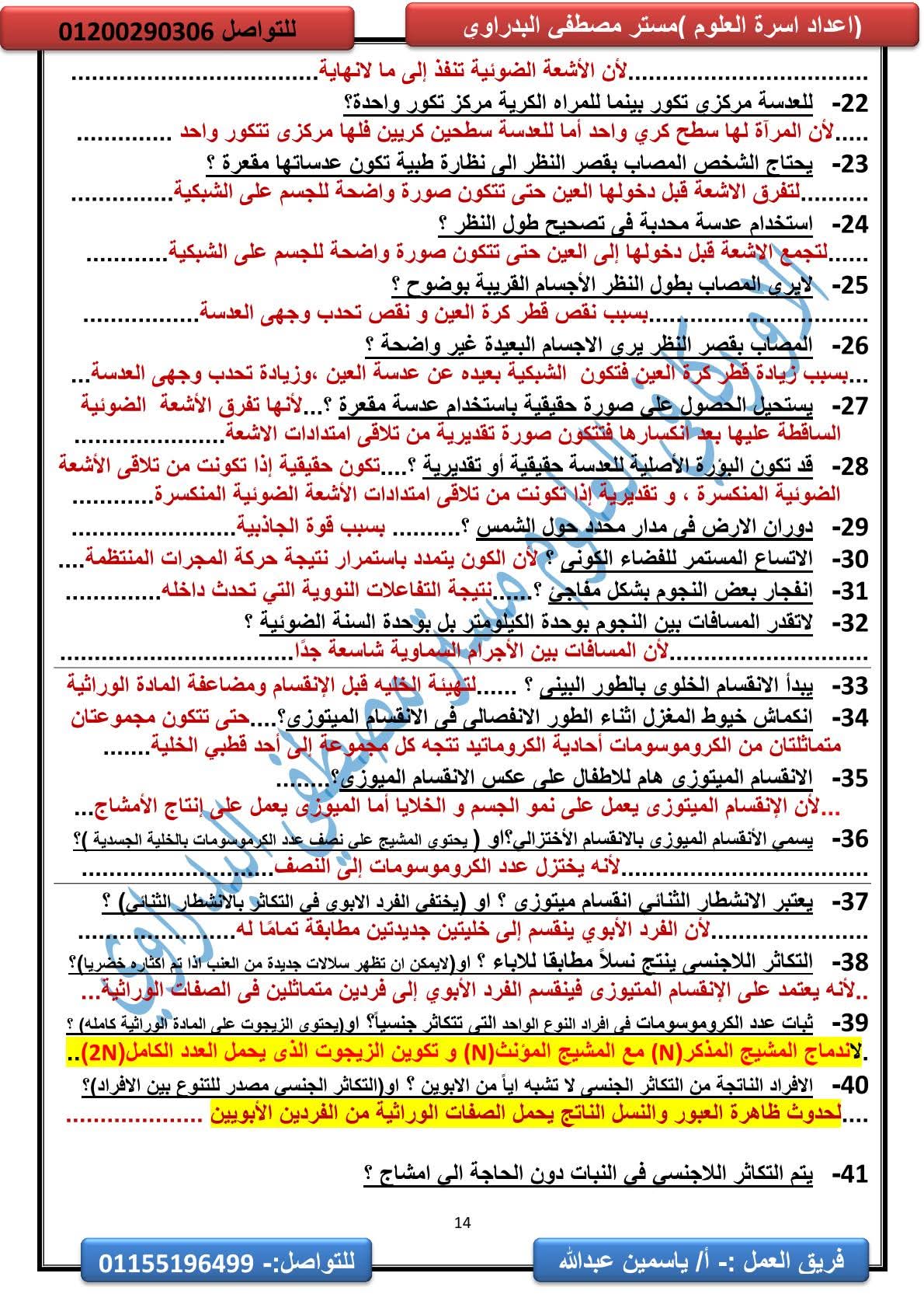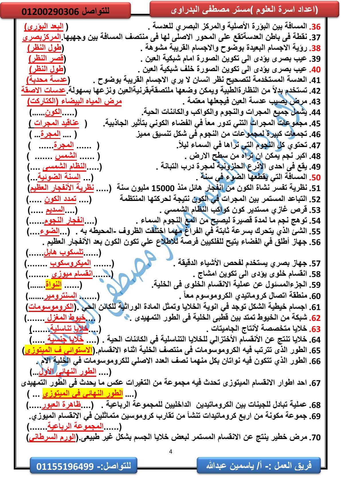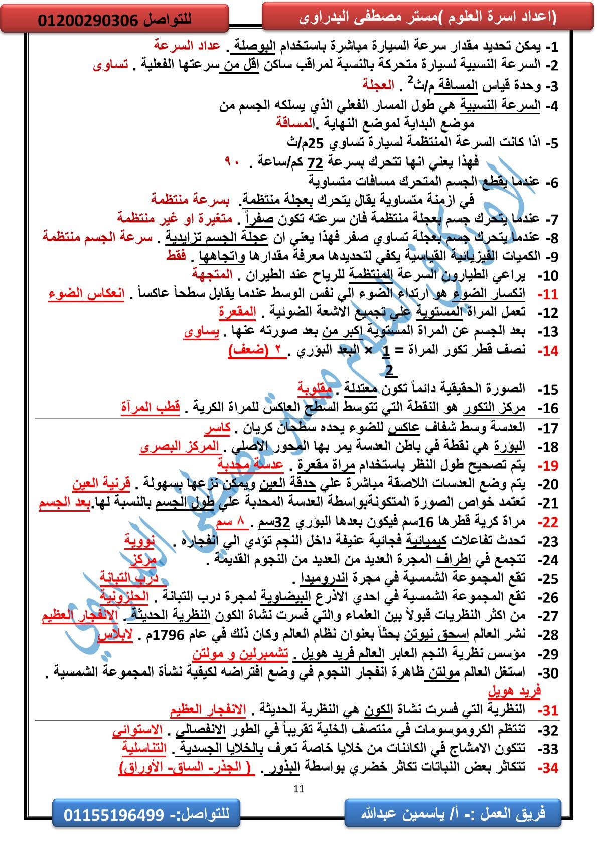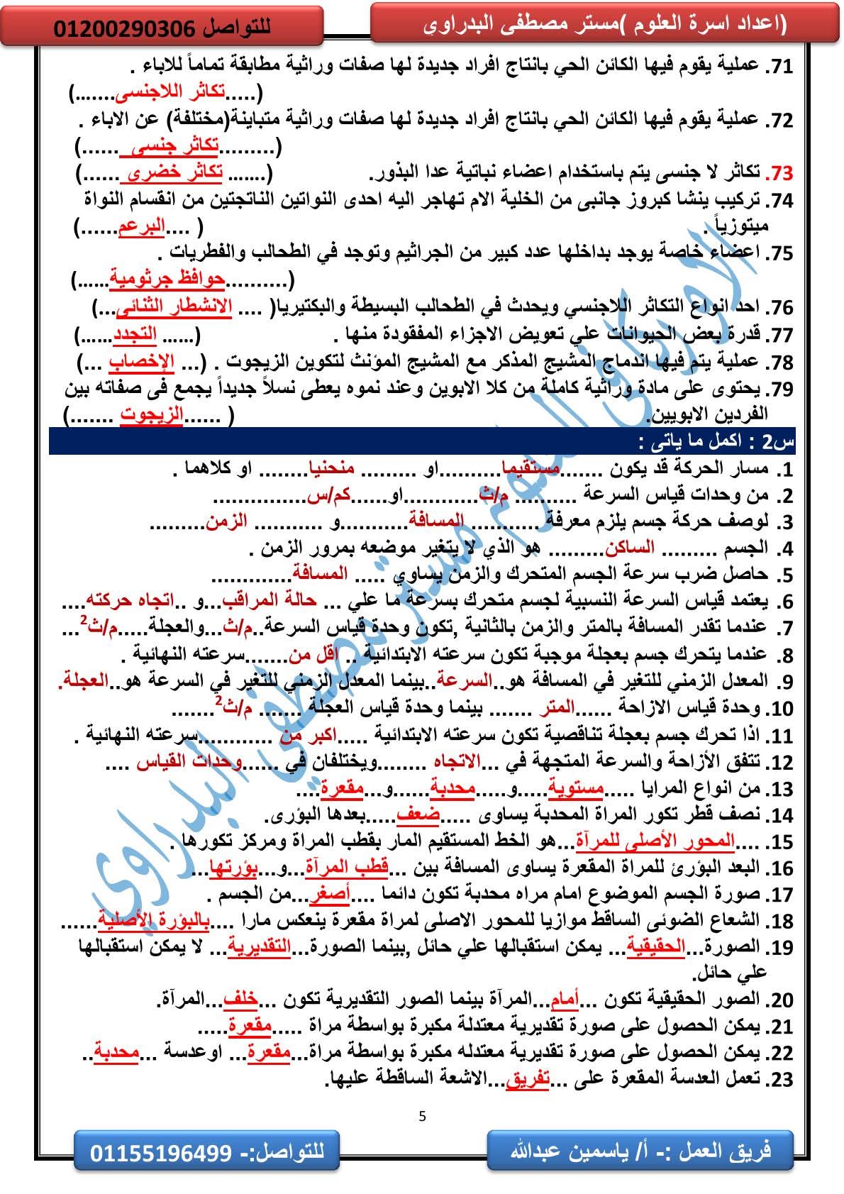 المراجعة النهائية علوم الصف الثالث الإعدادي