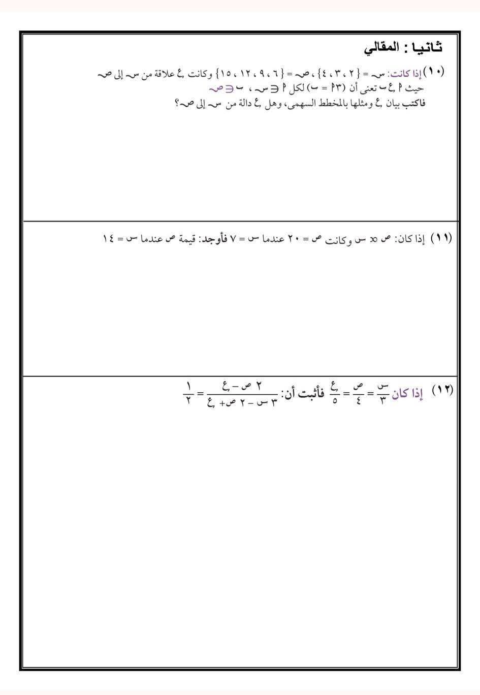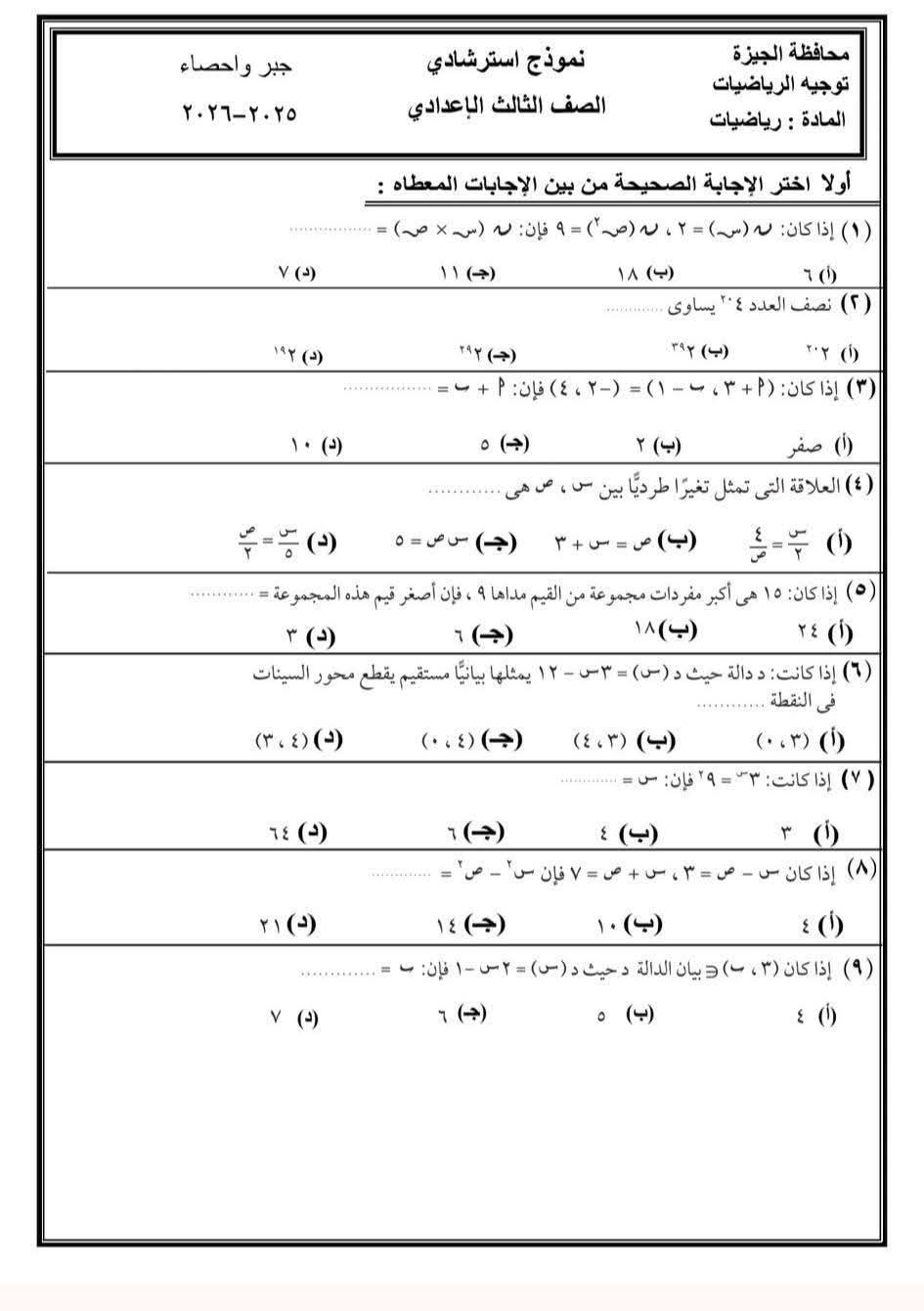 نماذج امتحانات جبر للصف الثالث الإعدادي