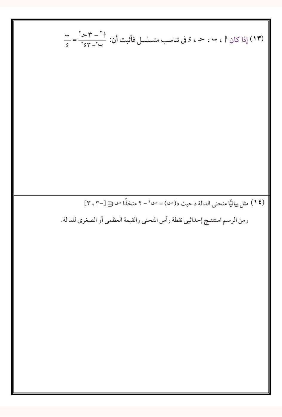 نماذج امتحانات جبر للصف الثالث الإعدادي، أسئلة هامة