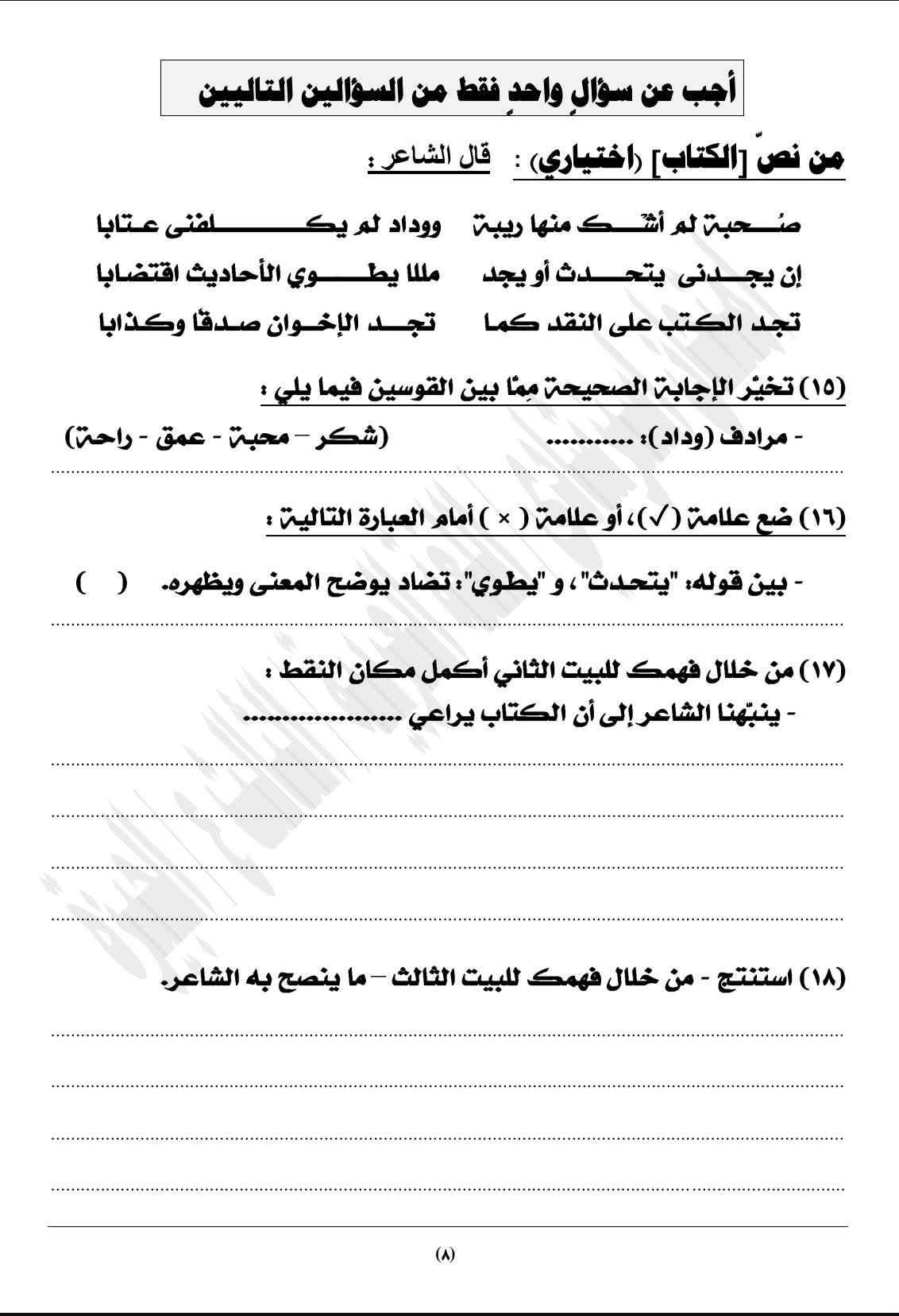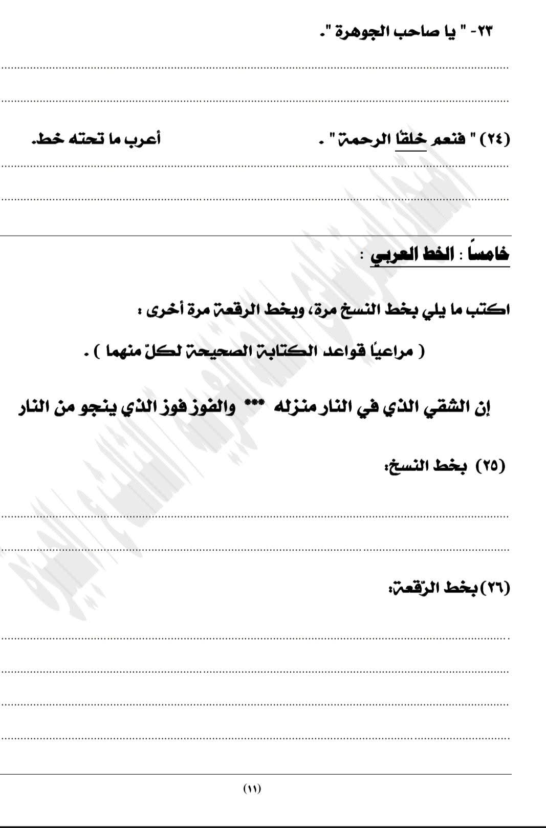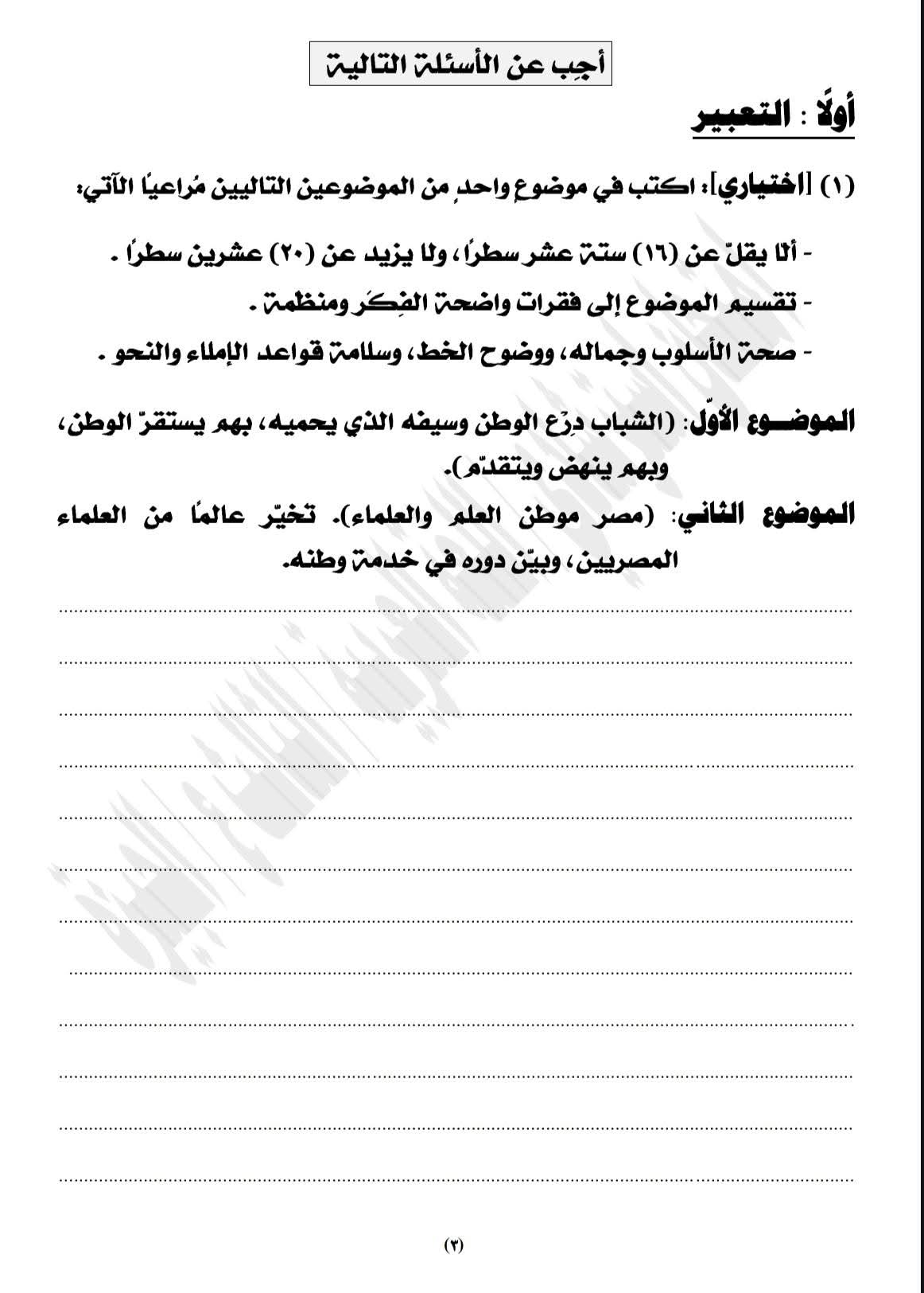 النماذج الاسترشادية للصف الثالث الإعدادي 2026 عربي