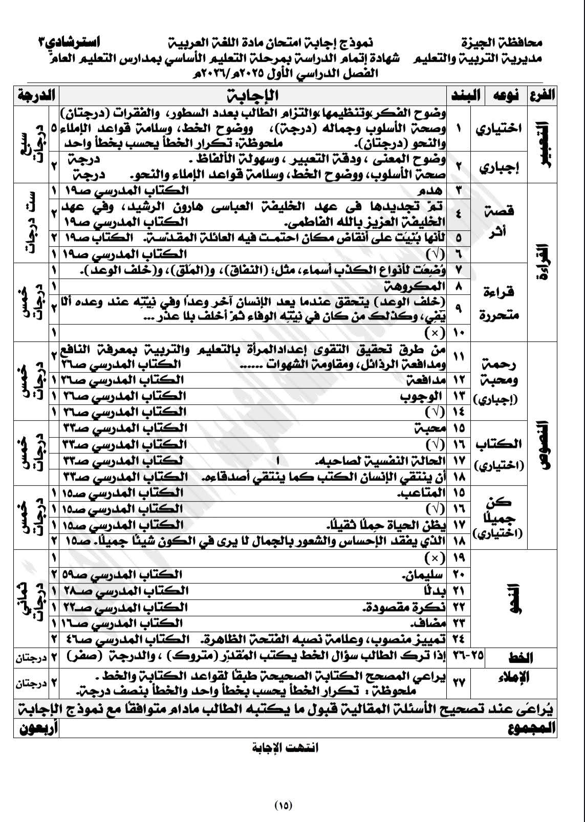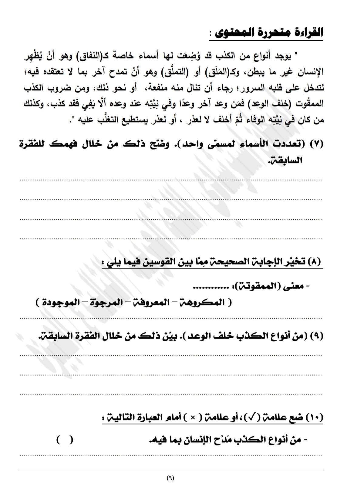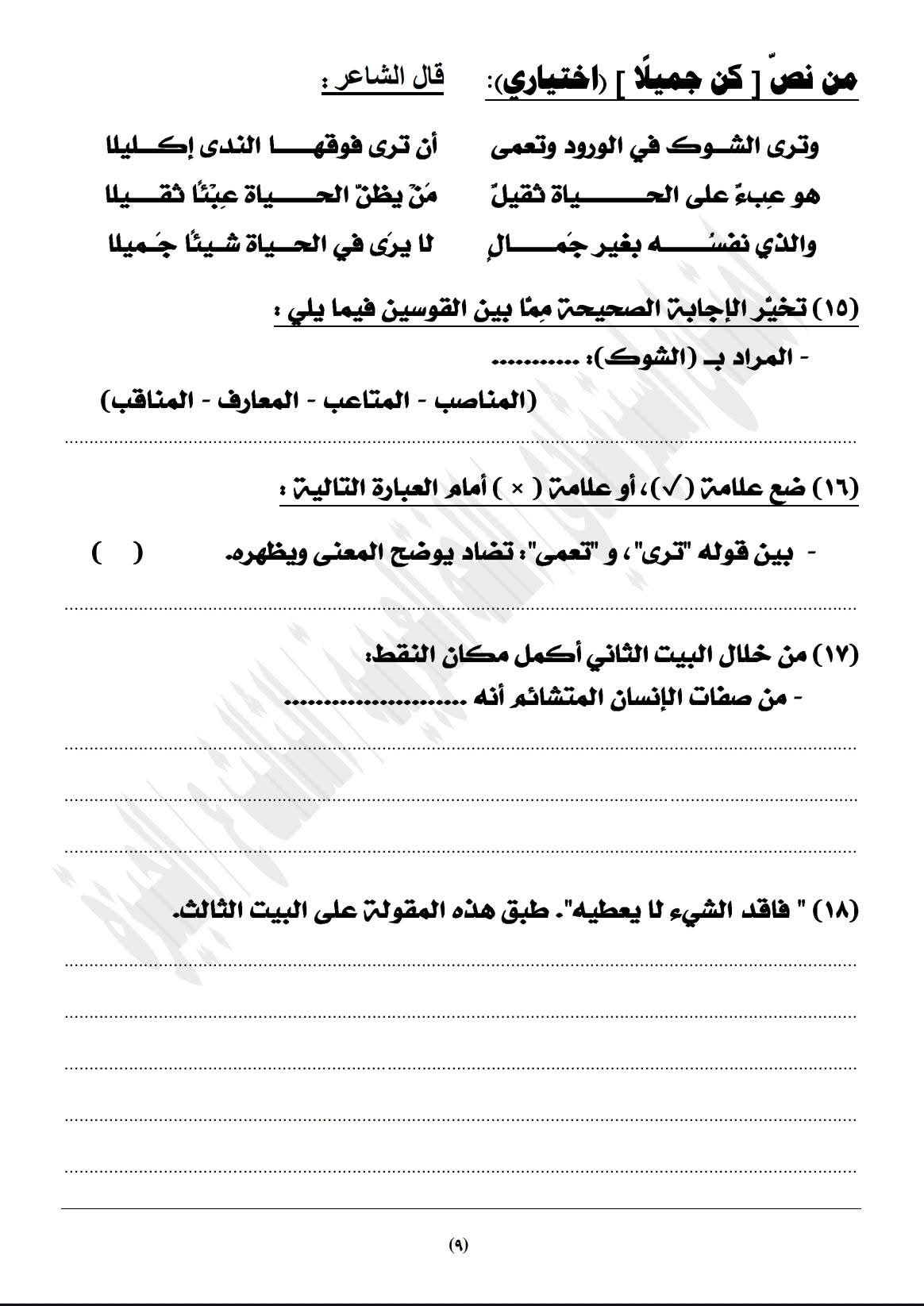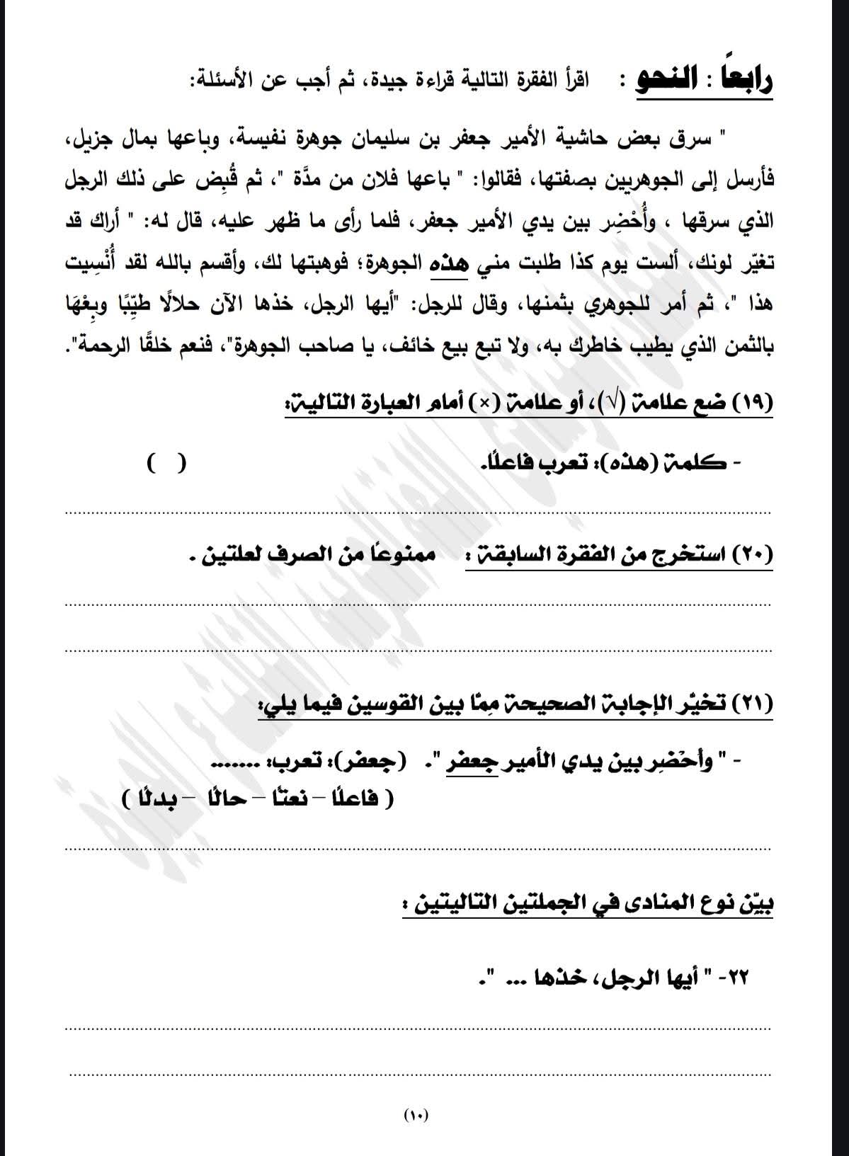 النماذج الاسترشادية للصف الثالث الإعدادي 2026 عربي