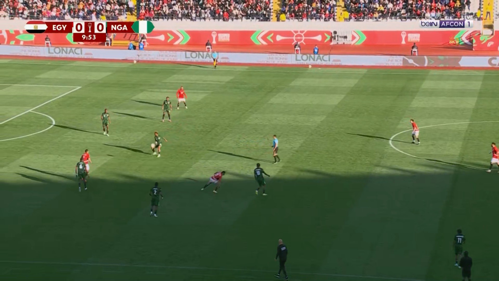 أرسل محمد صلاح، تمريرة رائعة لمحمود حسن “تريزيجيه”، في الدقيقة 16، في حالة انفراد تام بالمرمى، ولكن أنقذها في اللحظات الأخيرة حارس نيجيريا.