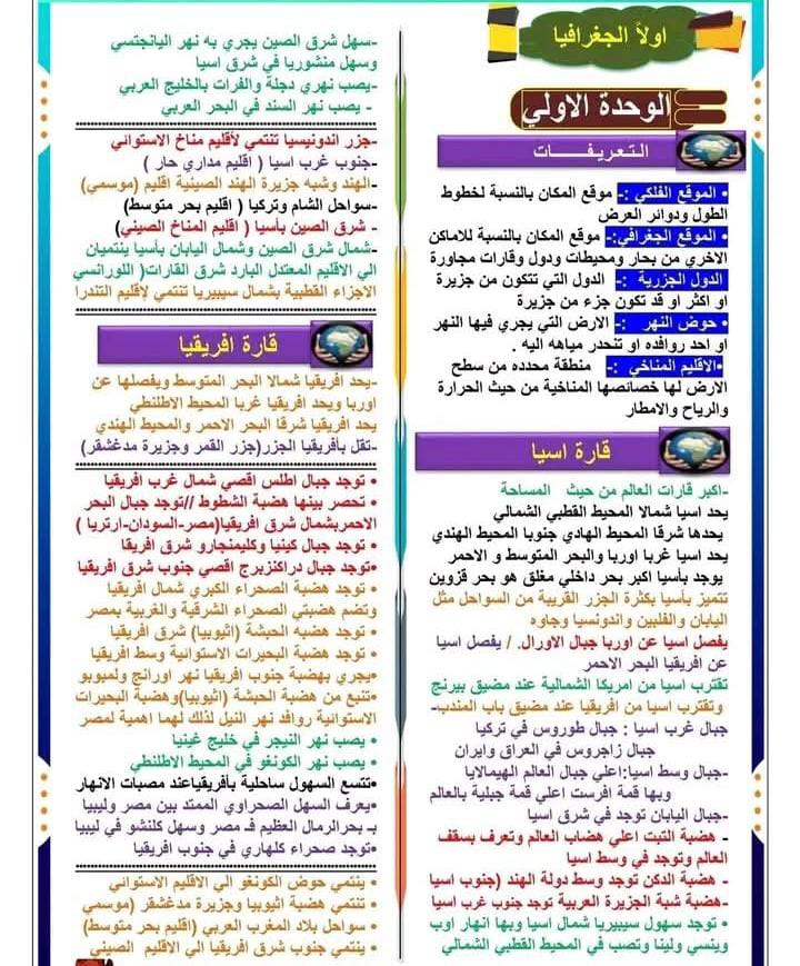 يتضمن ملخص دراسات اجتماعية للصف الثالث الإعدادي الترم الأول 2026 مجموعة من الموضوعات المهمة، منها: