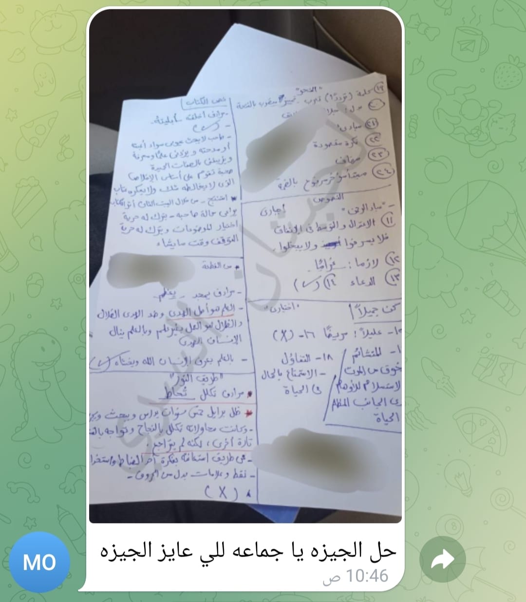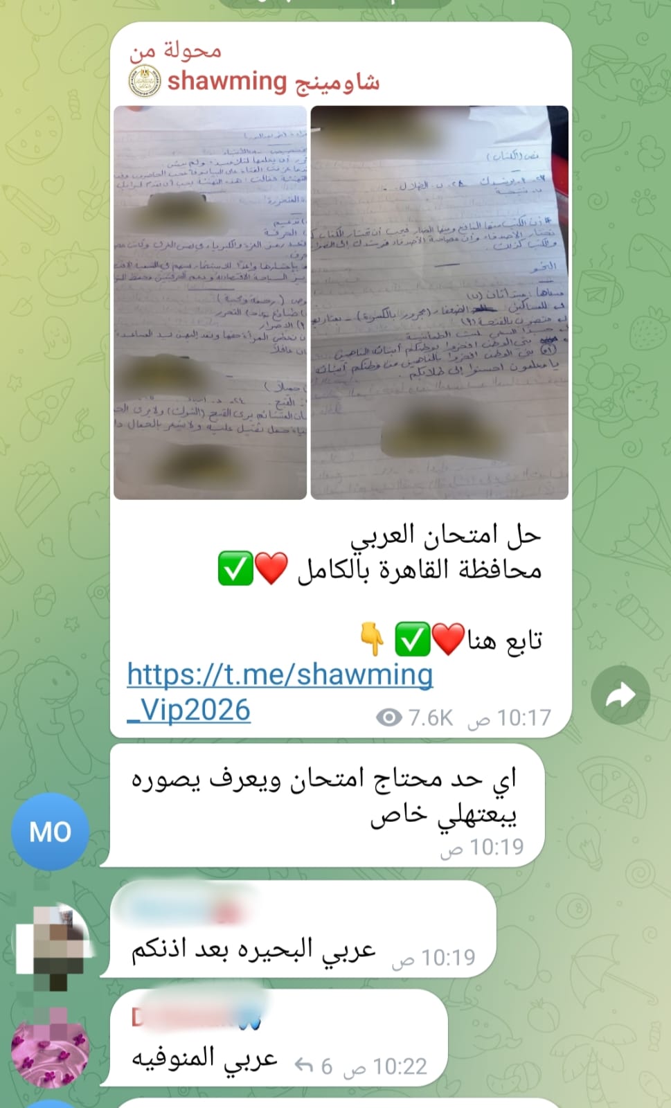 كشفت جولة سرية داخل جروب لتسريب امتحانات الشهادة الإعدادية على تليجرام، مشاهد غير متوقعة عن “عالم الغش”- إن صح التعبير- الذي لا يزال يسلب النوم من عيون المسؤولين، ورغم جهود مكافحة الغش على مدار السنوات الماضية، فإن بمقدور ثمن “كارت شحن” هدم ما بناه المسؤولون لمنع الغش وتداول الامتحانات المزعومة.