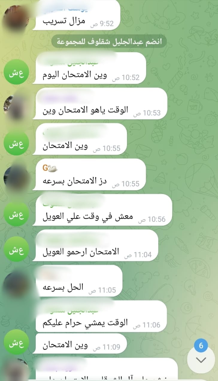 اللافت أن تلك الطلبات كانت تُنشر بشكل علني داخل الجروب، ويتبعها تفاعل سريع من بعض الأعضاء، إذ يتم فيه جمع وتداول الامتحانات حتى وإن كان الطالب داخل اللجنة، ومتبقي مدة قليلة على سحب الورقة.