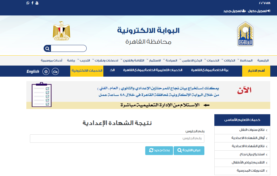 يمكن للطلاب وأولياء الأمور الاستعلام عن نتيجة الصف الأول الإعدادي برقم القومي والاسم بمحافظة القاهرة فور اعتمادها رسميًا، من خلال بوابة التعليم الأساسي التابعة لمديرية التربية والتعليم بالقاهرة، وذلك باتباع الخطوات التالية: