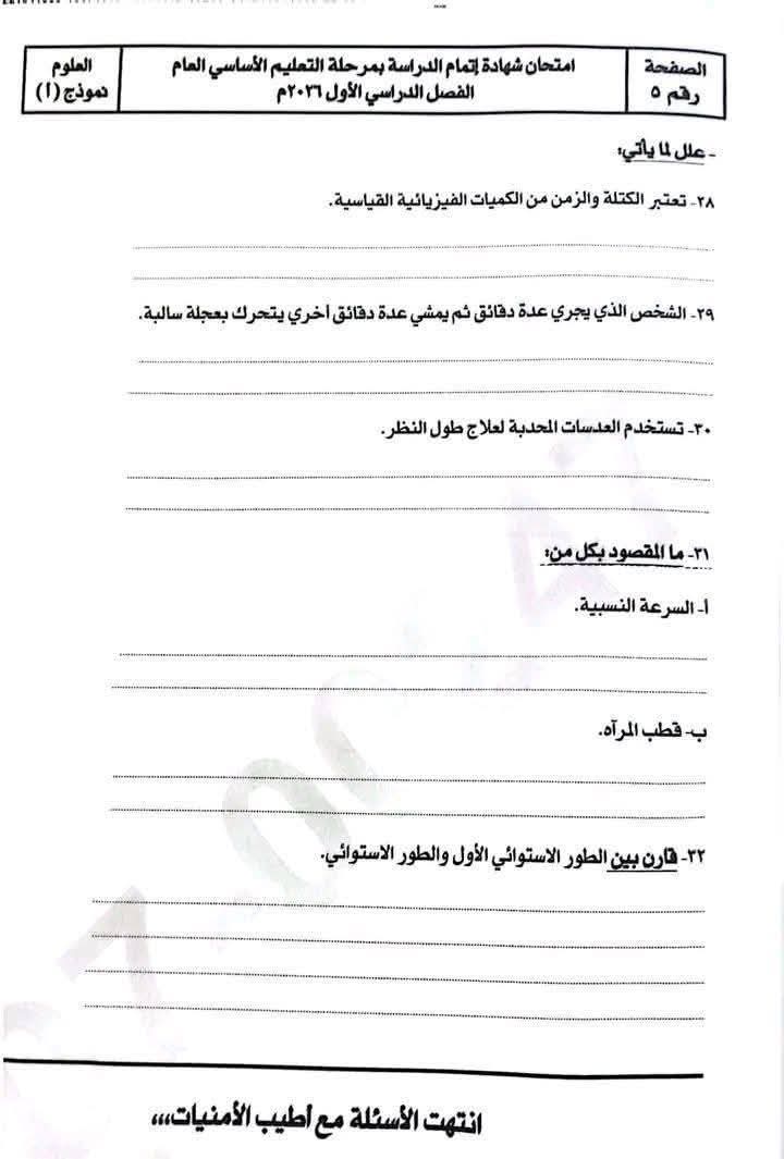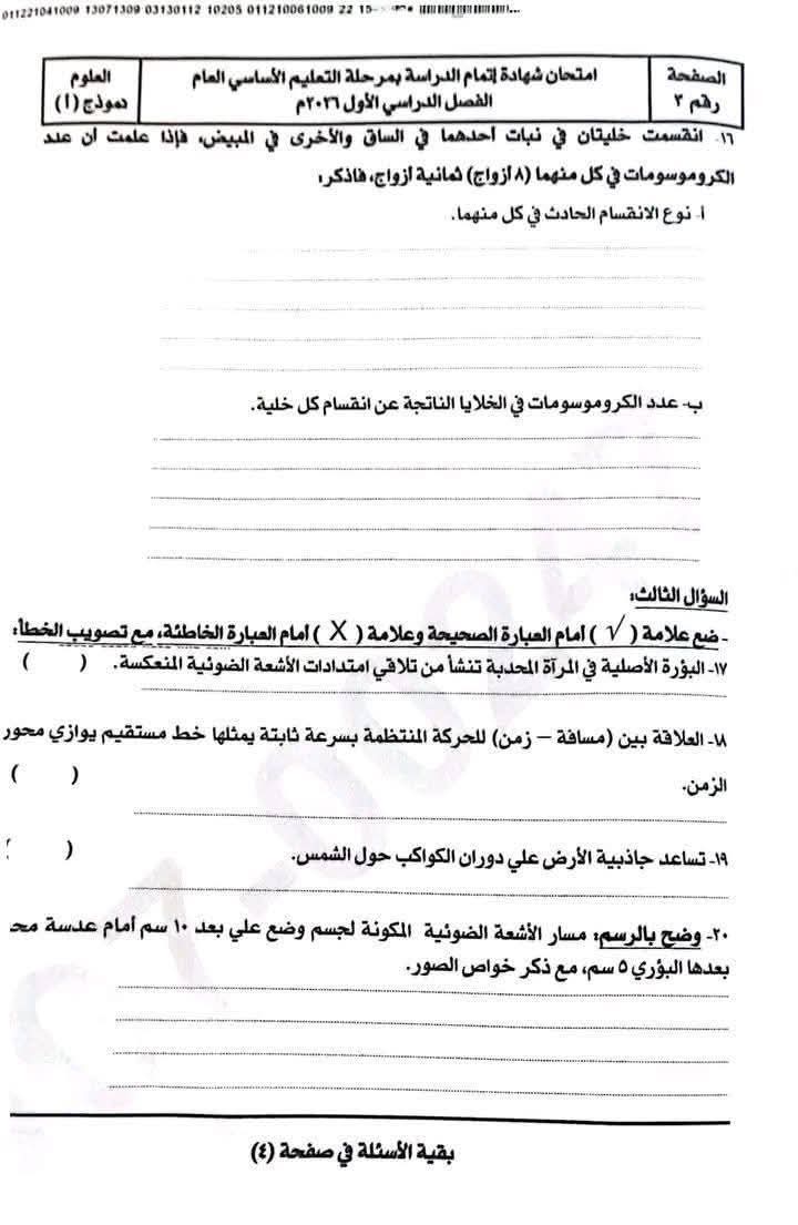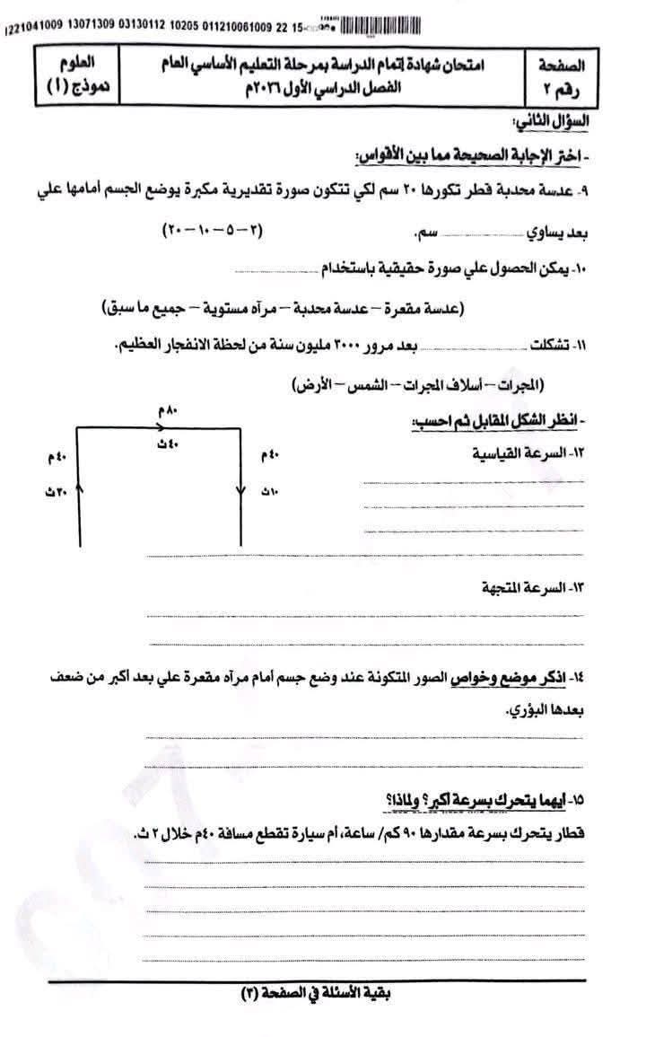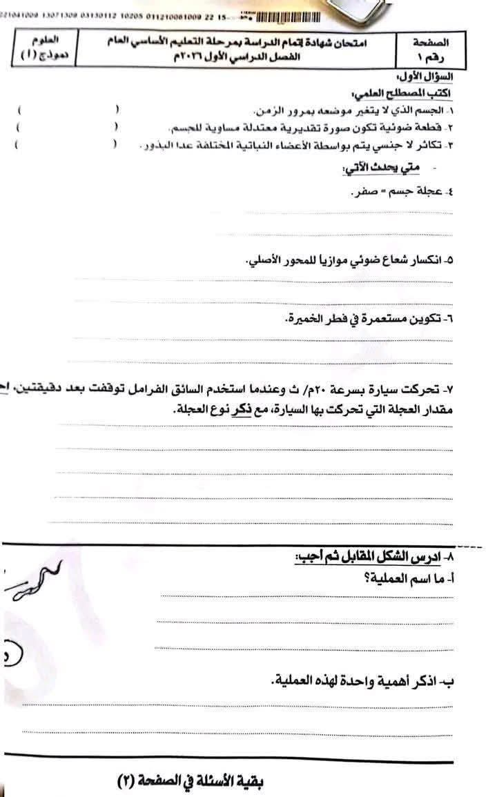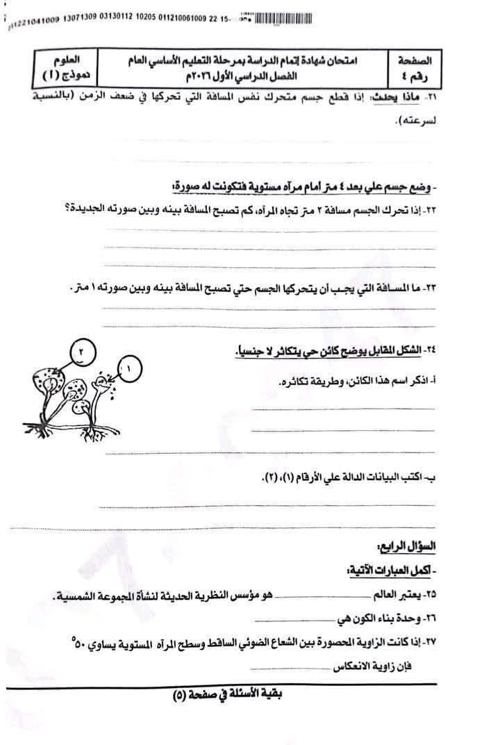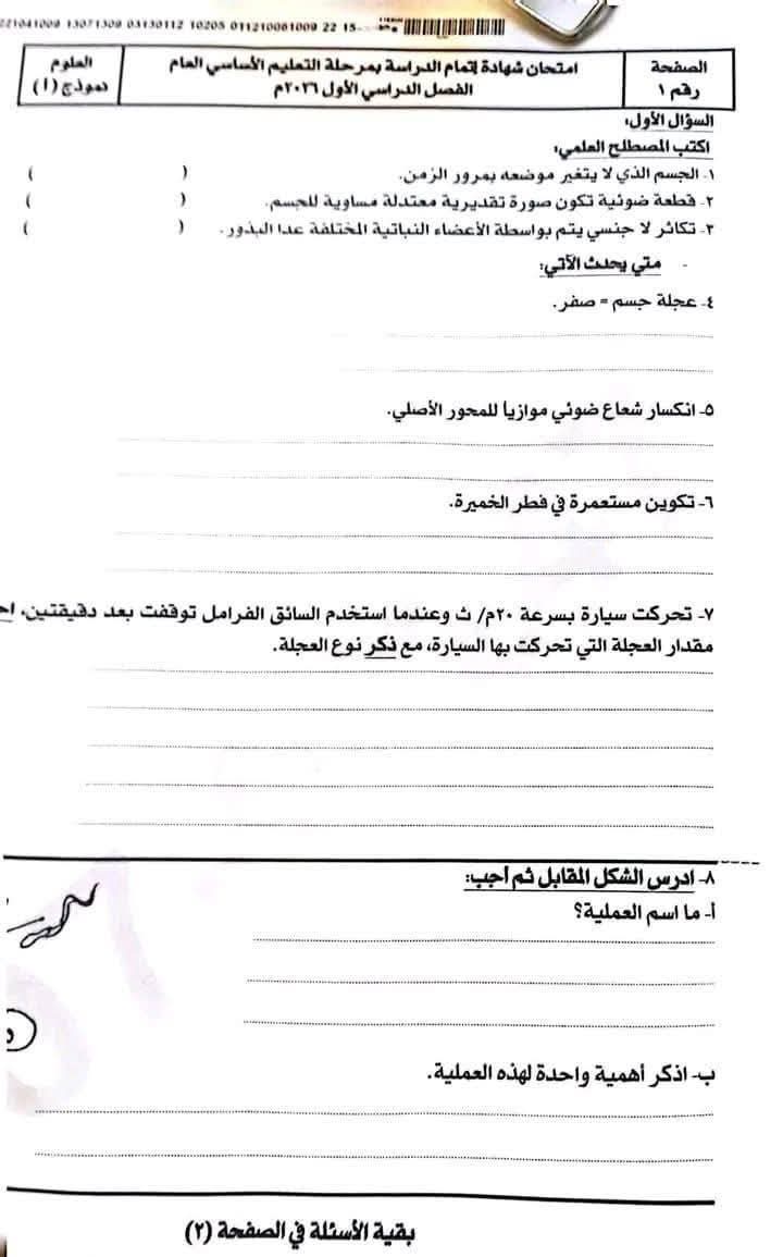 ونستعرض خلال الصور التالية نماذج امتحان علوم للصف الثالث الإعدادي ترم أول 2026: