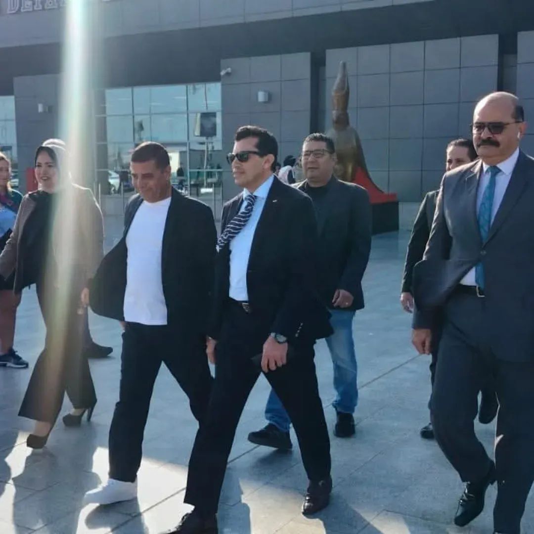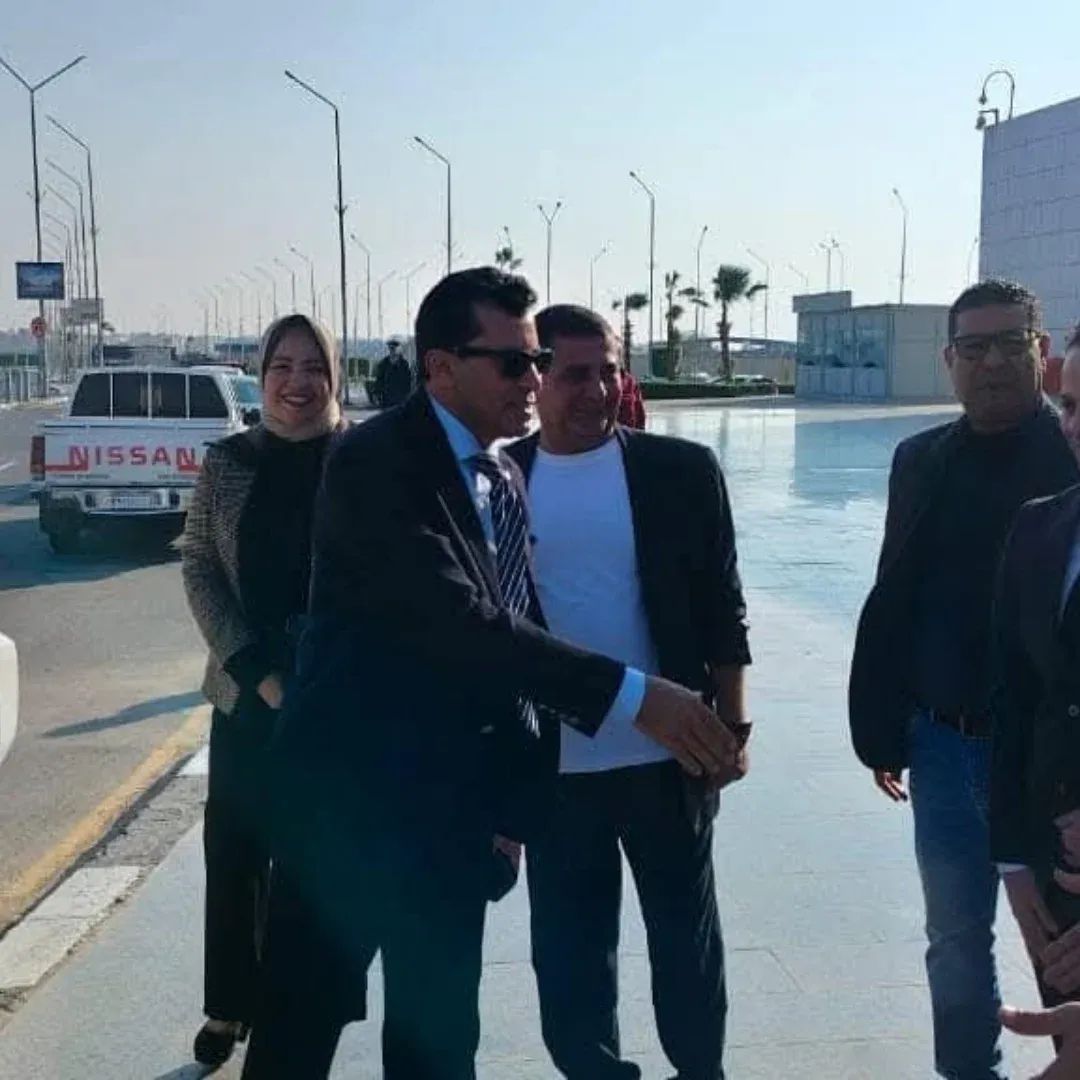 وزير الرياضة لحظة وصوله مطار الغردقة