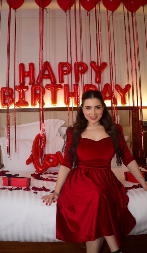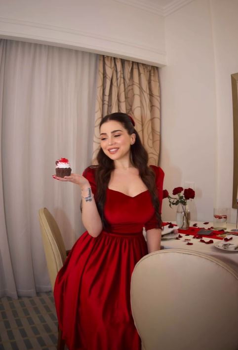 "هدية ربنا ليا"، مي عز الدين تطل بالأحمر في عيد ميلادها الأول بعد زاوجها (صور)
