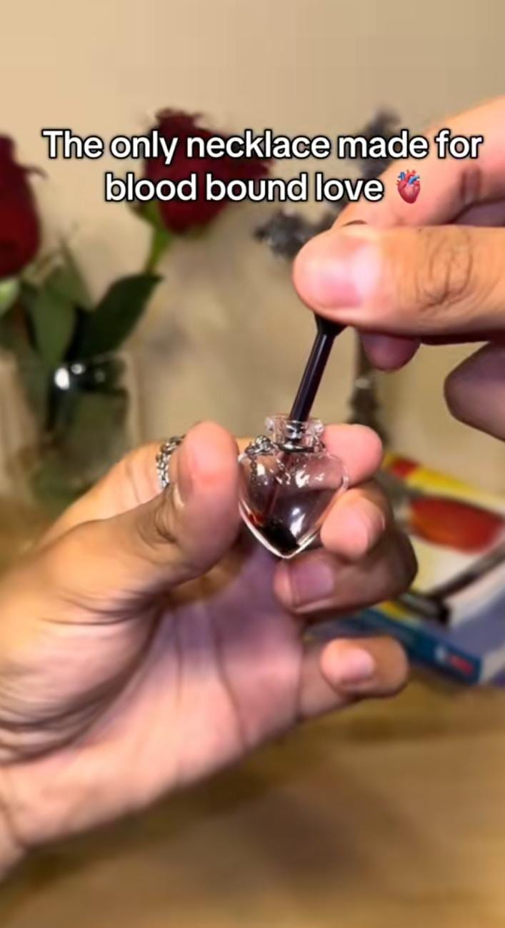 وظهر بمقاطع الفيديو المنتشرة على صفحات بيع الإكسسوارات، سلسلة على شكل قلب صغير معلق بها سيف حاد، ومن المفترض أنه يستخدمه أحد الطرفين لجرح منطقة من جسده، ويتم استخدام نقاط الدم السائلة نتيجة للجرح وحقنها في قالب على شكل قلب حقيقي، لكي تُهدى للطرف الآخر.