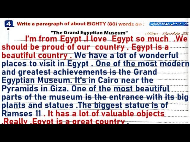 نماذج برجراف عن المتحف المصري الكبير للصف الثالث الإعدادي