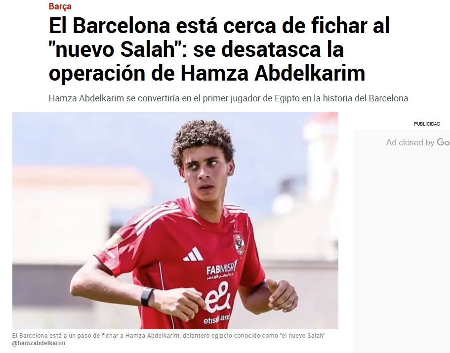 لا تزال الصحف الإسبانية، تتابع احتمالية انتقال حمزة عبدالكريم، لاعب الأهلي، إلى صفوف برشلونة الرديف، خاصة بعد الغيابات العديدة في هجوم الفريق تحت قيادة جوليانو بيليتي.