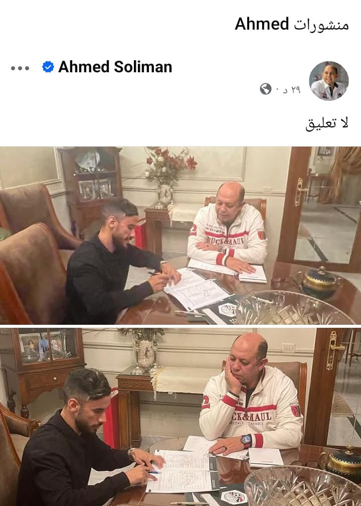 ونشر سليمان صورة تجمعه مع ناصر ماهر أثناء توقيعه للنادي الأبيض في وقت سابق، وعلق عليها بكلمة واحدة: "لا تعليق".