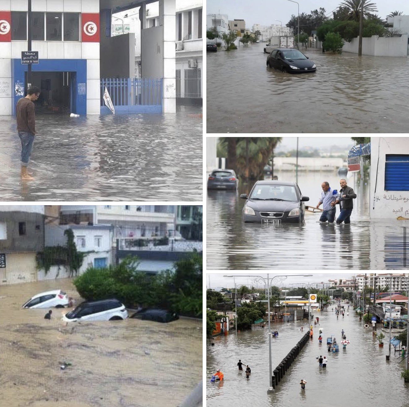 وشهدت عدة ولايات خاصة تونس الكبرى، ونابل والمنستير، مشاهد غير مسبوقة، لطرق تحولت إلى أنهار ومنازل غمرتها المياه وسيارات جرفتها السيول في ظل تداول واسع لمقاطع مصورة على وسائل التواصل الاجتماعي توثق نداءات استغاثة من مواطنين حاصرتهم المياه.