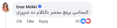 وعلقت لها الفنانة إيناس مكي: "المحامي يرفع قضية بالكلام ده ضروري"، بينما قال لها الفنان كريم الحسيني: "لا حول ولا قوة إلا بالله، ناس مريضة، حسبي الله ونعم الوكيل.. ارفعي قضية ومتسبيش حقك".