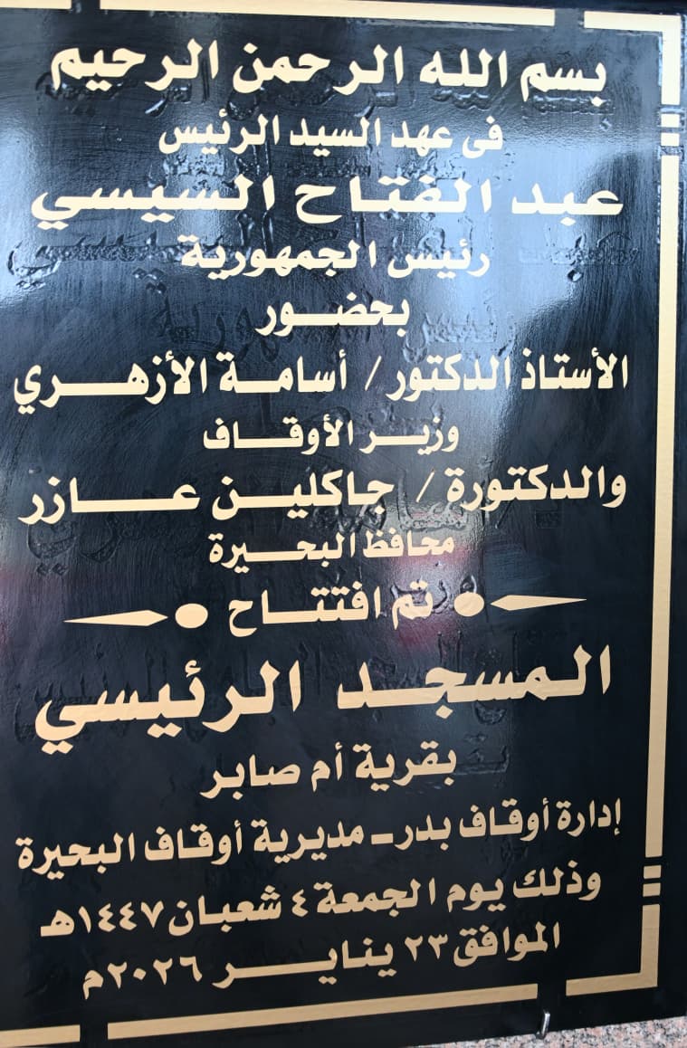 افتتح الدكتور أسامة الأزهري وزير الأوقاف، والمستشار محمود فوزى وزير شؤون المجالس النيابية، والدكتورة جاكلين عازر محافظ البحيرة، المسجد الرئيسي بقرية أم صابر بمركز بدر، وذلك في إطار اهتمام الدولة المصرية بإعمار بيوت الله، وتشييد وتطوير المساجد بما يعكس رسالة الدين الإسلامي السمحة، ويعزز دورها الديني والمجتمعي.