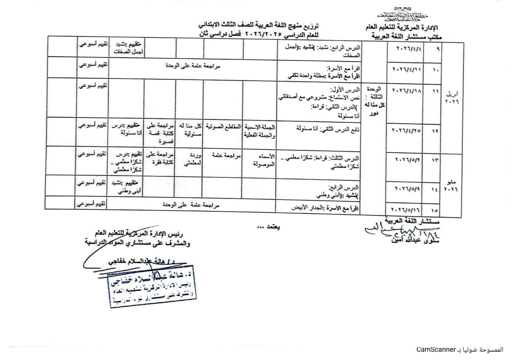 توزيع منهج اللغة العربية الصف الثالث الابتدائي الترم الثاني