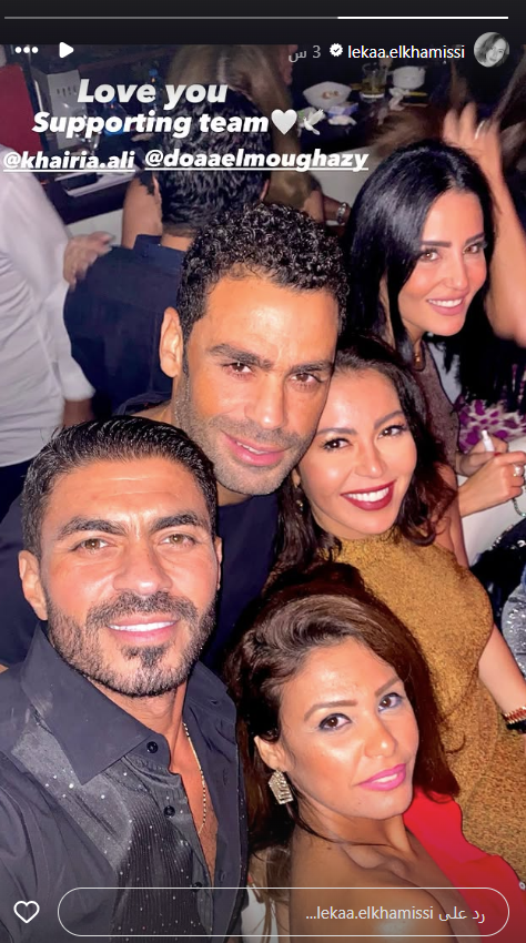 ونشرت لقاء الخميسي عبر حسابها على منصة "إنستجرام" صورة لها مع زوجها عبدالمنصف والفنان خالد سليم وزوجته، معلقة عليها "أحب الفريق الداعم".