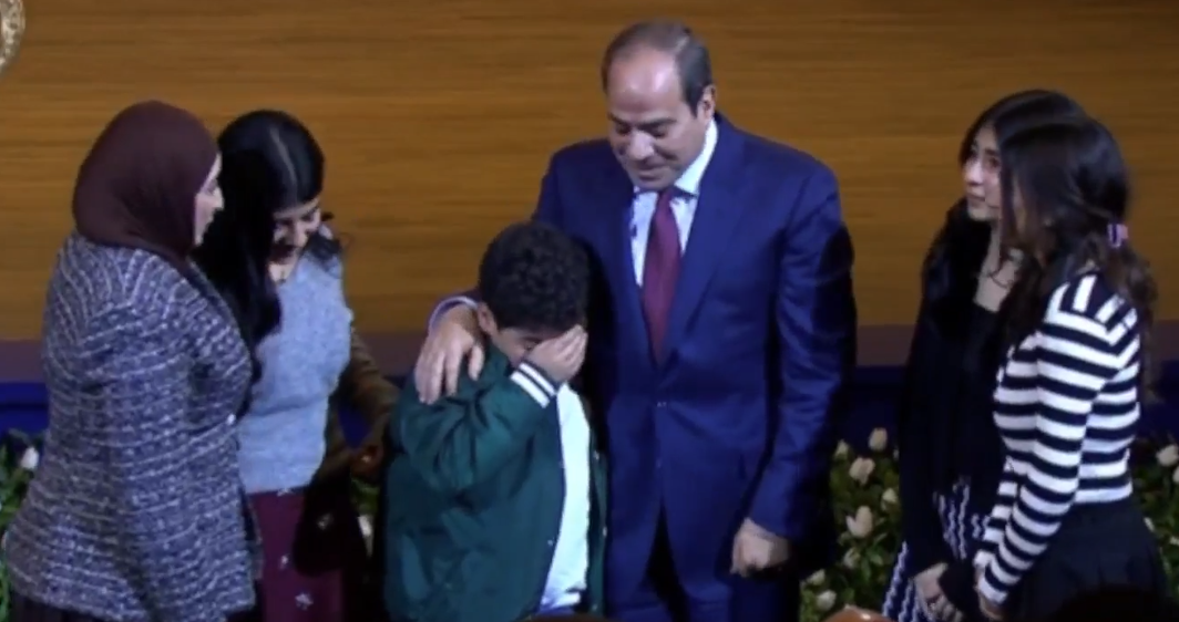 وأضاف الطفل: "أول ما شوفت بابا السيسي حسيت إني مطمن، وحسيته شبه بابا.. نفسي أسأل بابا سيبتني ليه؟، ملحقتش أقولك ولا أعملك حاجات كتير".