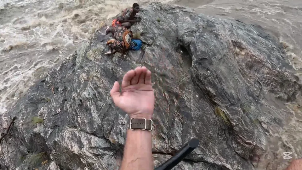 وجرفت المياه العاتية زوجين خلال محاولتهما عبور جسر لشراء بعض المستلزمات، قبل أن يعلقا فوق صخرة وسط نهر فوندوزي المتضخم، ليبقيا محاصرين هناك قرابة 27 ساعة متواصلة، بينما كانت المياه الهائجة تحاصرهما من كل اتجاه.