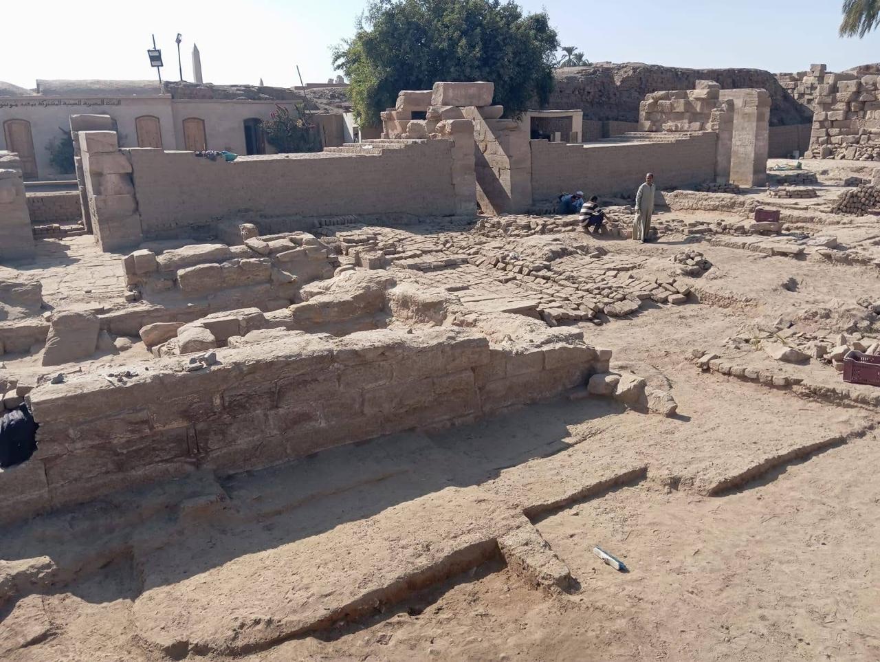 وشملت الاكتشافات أيضًا عددًا كبيرًا من الكتل الحجرية المعاد استخدامها من عصور وملوك مختلفين، إلى جانب الكشف عن أرضيات حجرية أصلية للمقصورات والمباني داخل المعبد، يجري حاليًا ترميمها وتقويتها بواسطة متخصصين.