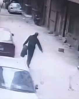 ويُظهر الفيديو، شخصًا يستغل خلو الشارع في وضح النهار، حيث قام بمراقبة المكان قبل أن يفتح شنطة السيارة ويستولي على إطار سيارة، ثم لاذ بالفرار دون أن يلاحظه أحد.