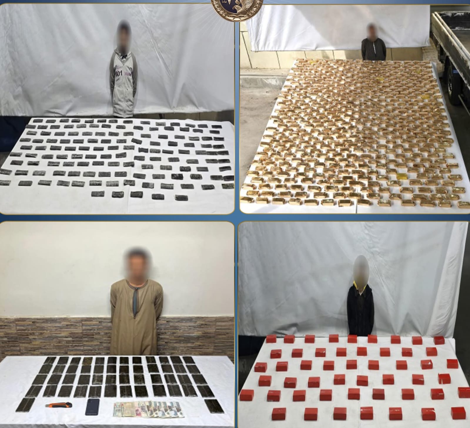 وبحوزتهم (قرابة طن من المواد المخدرة المتنوعة “حشيش، هيدرو، آيس، هيروين”– 59 قطعة سلاح ناري "11 بندقية آلية ، 32 بندقية خرطوش ، 15 فرد خرطوش –طبنجة")، هذا وتقدر القيمة المالية للمواد المخدرة المضبوطة بـ (83) مليون جنيه، وتم اتخاذ الإجراءات القانونية.