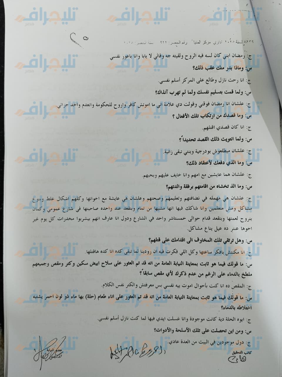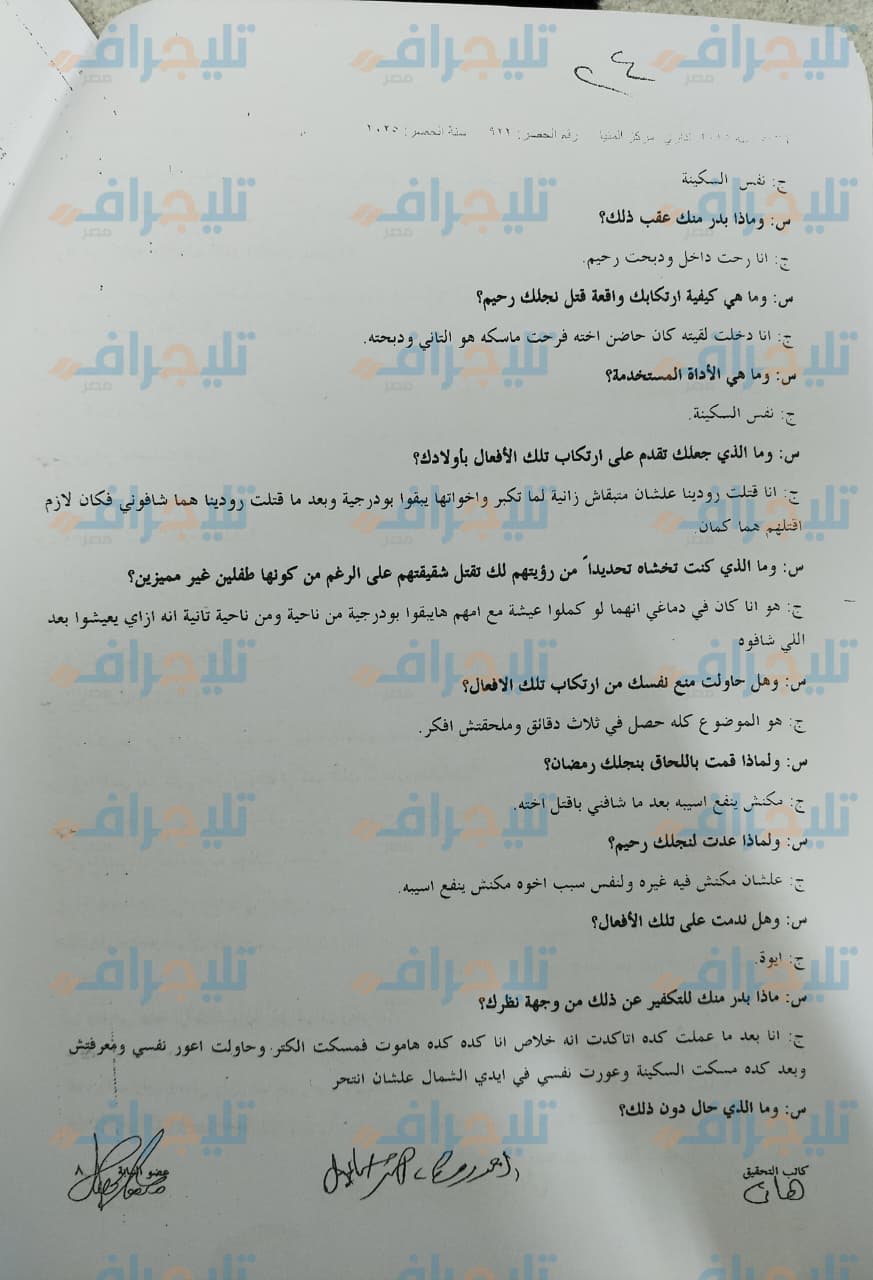 نص اعترافات قاتل أطفاله الثلاثة بالمنيا