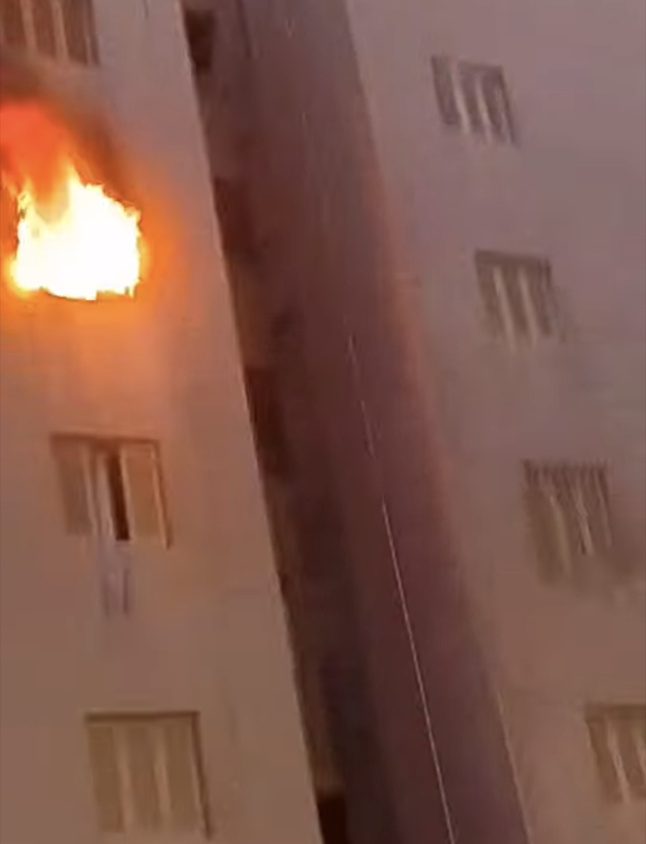 وأظهرت الصور خروج ألسنة اللهب من نوافذ الشقة، لكنها لم تمتد إلى الشقق المجاورة لها في نفس العقار.
