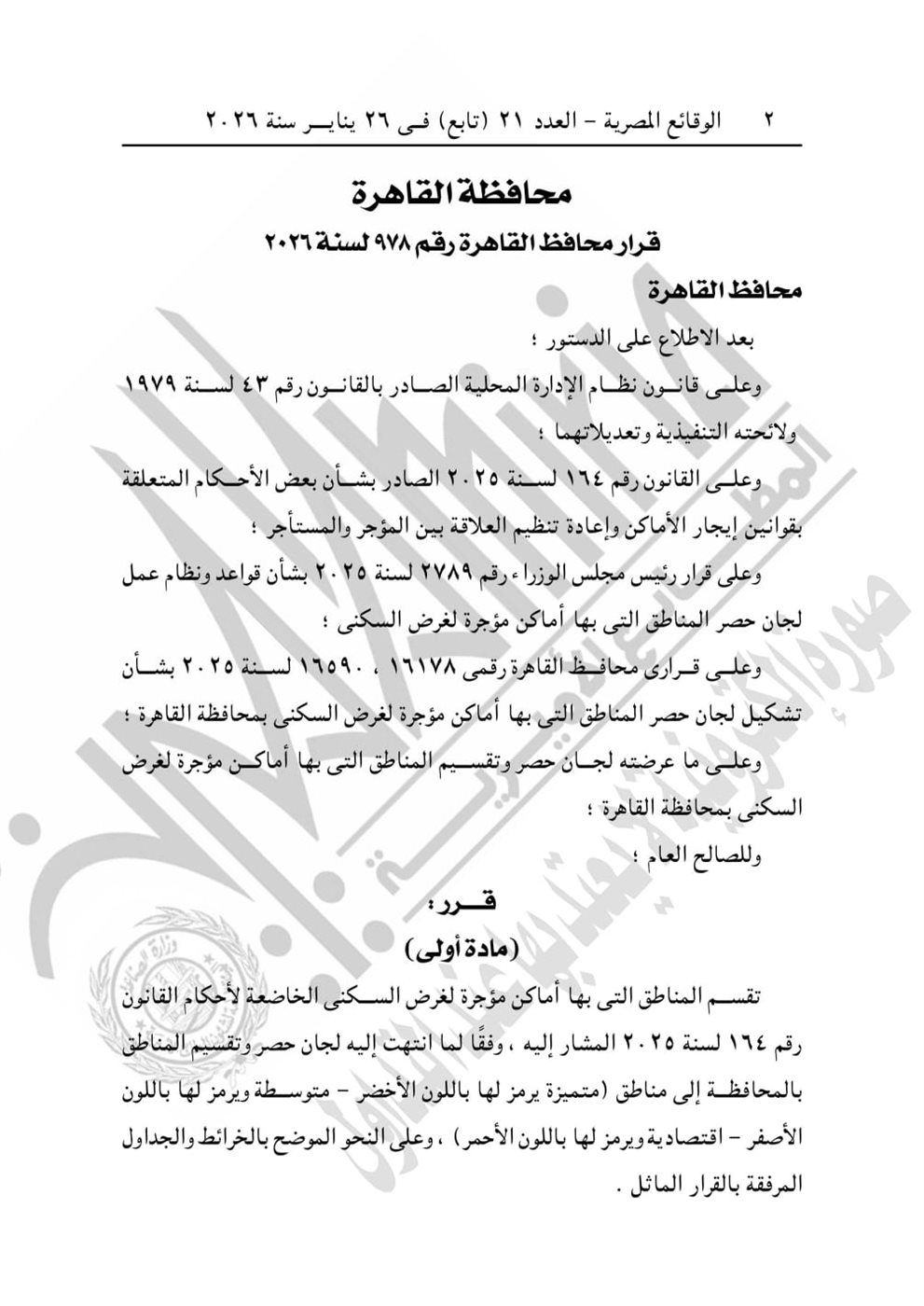 تصنيف مناطق الإيجار القديم بمحافظة القاهرة