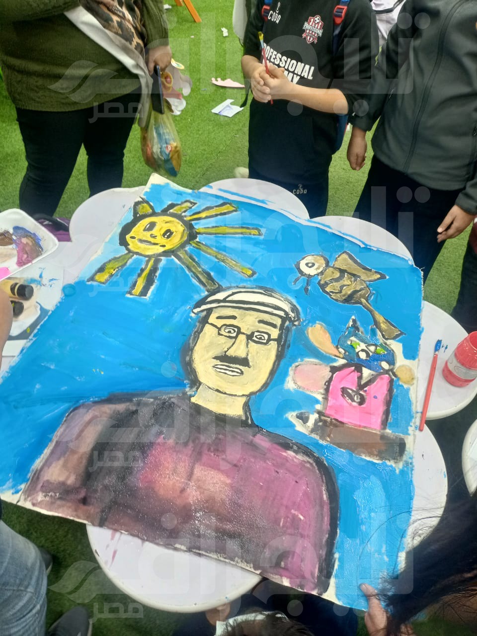 وخلال الورشة، رسم الأطفال بورتريه اللباد وأضافوا رموزًا مميزة من أعماله، مثل الشمس والقطة، لتعكس عالمه الإبداعي الخاص. وفاز الطفل علي إبراهيم، البالغ من العمر 12 عامًا، بعلبة ألوان كمكافأة على مشاركته وإبداعه في رسم وتلوين شخصية اللباد بألوان الأكريليك.