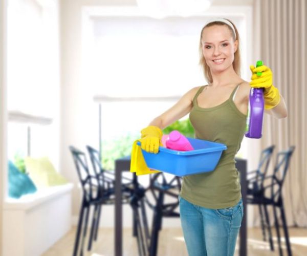 المرأة تنظف البيت