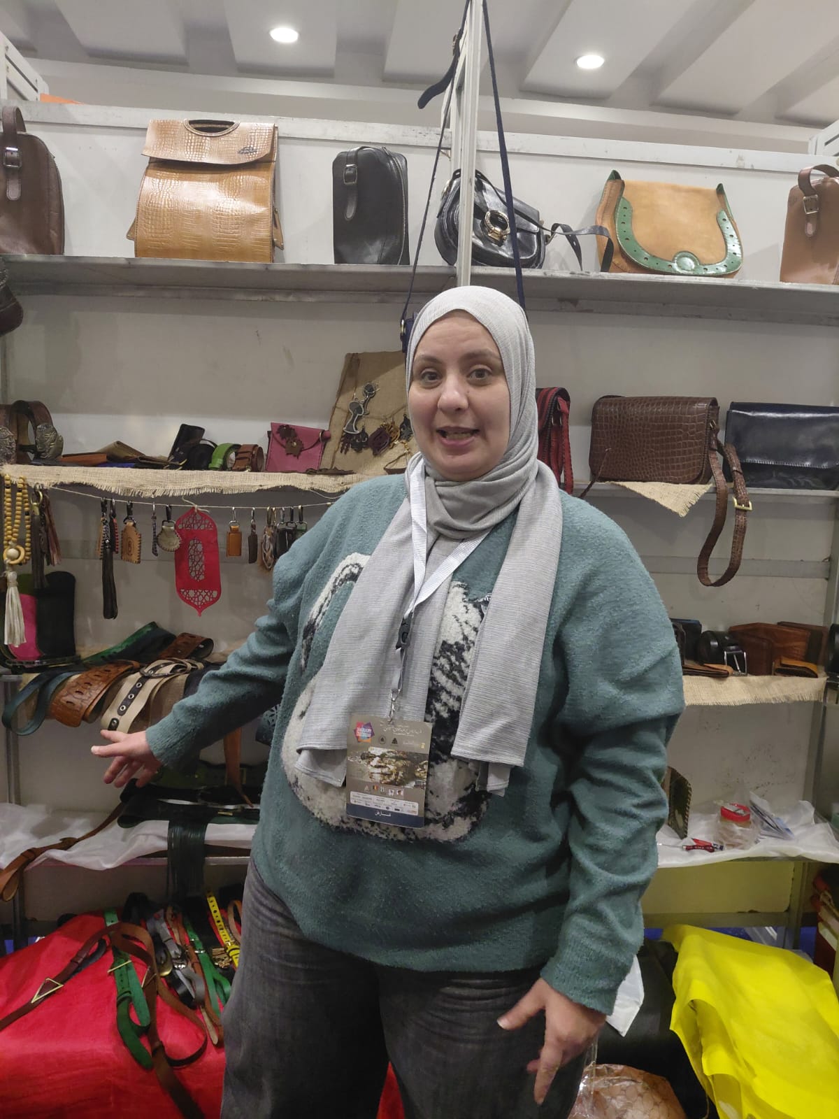 وأضافت أن جميع منتجاتها مصنوعة من خامات مصرية خالصة، من بينها خيوط وجلود طبيعية محلية، مع الحرص على تقديم تصميمات تناسب الاستخدامات اليومية للمصريين، مثل المحافظ والميداليات، بأسلوب فني.