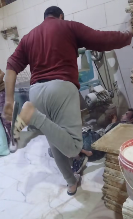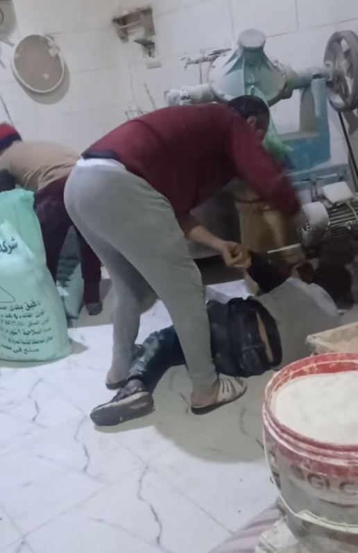 انتشر مقطع فيديو بمواقع التواصل الاجتماعي، يظهر خلاله قيام أحد الأشخاص بالتعدي على آخر داخل مخبز للعيش البلدي.