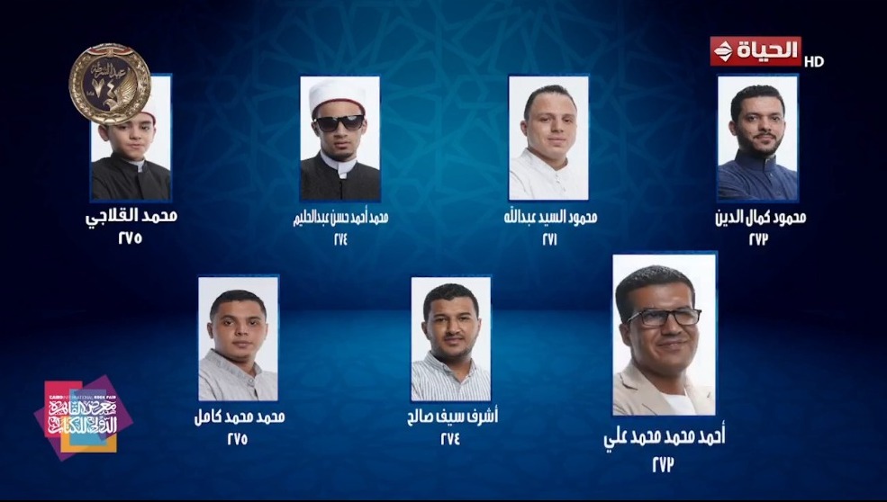 وقد ضمت حلقة أمس، قراء الحلقة الماضية، لإعلان النتيجة الشاملة لنصف نهائيات المسابقة، وجاء محمد القلاجي، والقارئ محمد محمد كامل على رأس النتائج بمجموع نقاط 275، فيما حقق القارئ أشرف سيف صالح والقارئ محمد أحمد حسن مجموع نقاط 274، أما كل من القارئ محمود كمال الدين، وأحمد محمد علي فقد حصلا على مجموع نقاط 273، وجاء محمود السيد عبدالله في نهاية القائمة بمحموع درجات 271.