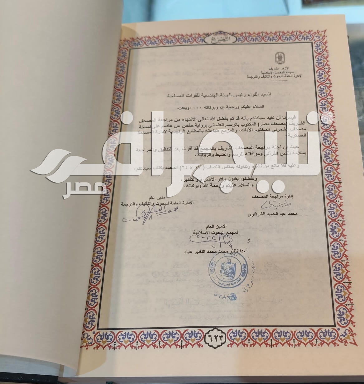 وكشف مسؤولو جناح وزارة الدفاع بمعرض الكتاب لـ"تليجراف مصر"، أن “مصحف مصر” تم جمعه لأول مرة، بعد أن كان يتم تجميعه واستيراد النسخ من السعودية.